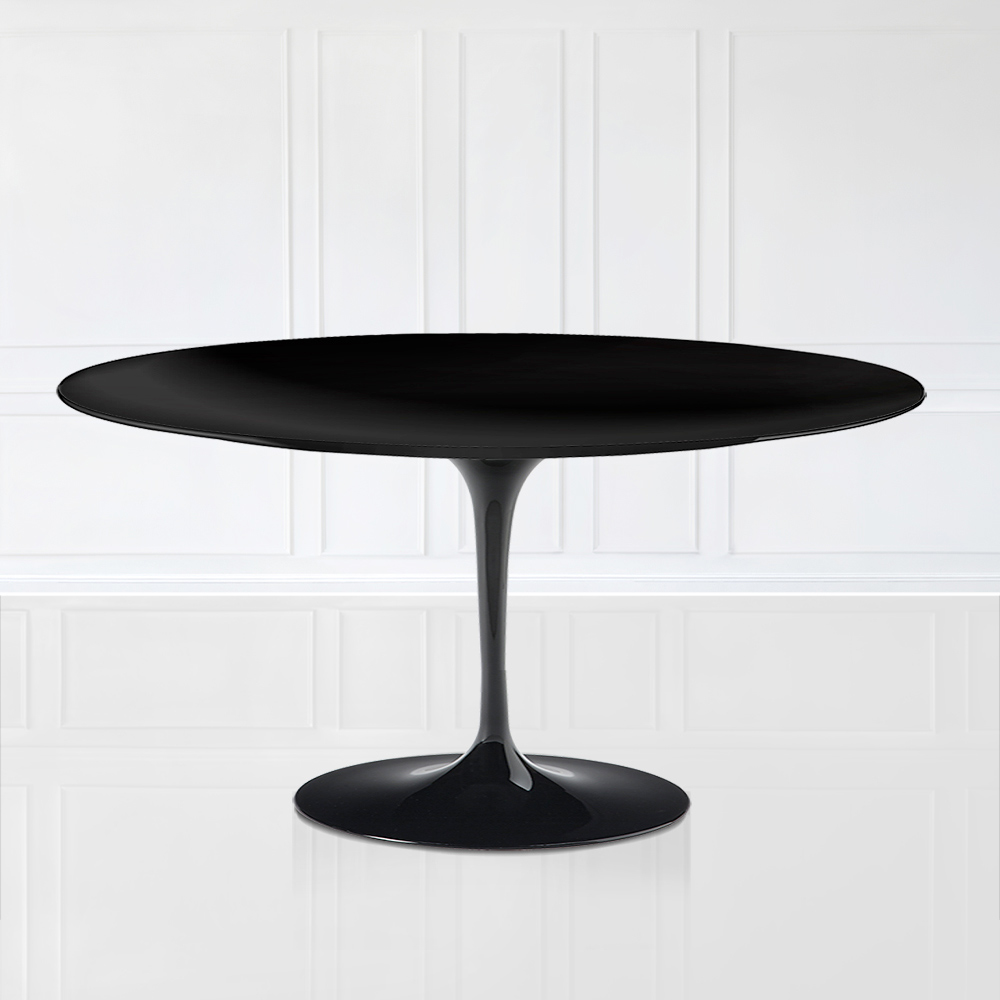 Tavolino da pranzo interamente realizzato in Italia con piano ovale in laminato liquido nero e base in alluminio lucido nero. Questo tavolo si adatta a qualsiasi tipo di occasione d'uso e a qualsiasi tipo di design. L'innovativa forma ovale è perfetta per avere più commensali e la forma debasamento è ottima per inserire diverse sedie. Grazie alle sue finiture e linee semplici ed eleganti può essere inserito in tutti gli stili di arredamento, damoderno allo chic aretrò. Questo elemento è l'idea vincente per chi ama arredare con gusto e originalità ogni ambiente della casa.