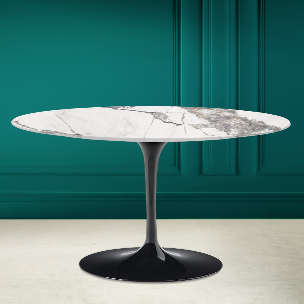 Tavolino da salotto ovale con piano in ceramica invisible select e base in alluminio lucido Made in Italy