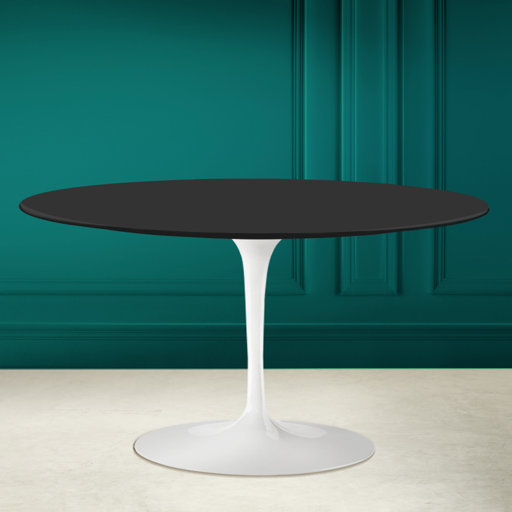 Tavolino da salotto ovale con piano in ceramica Nero soft e base in alluminio lucido Made in Italy