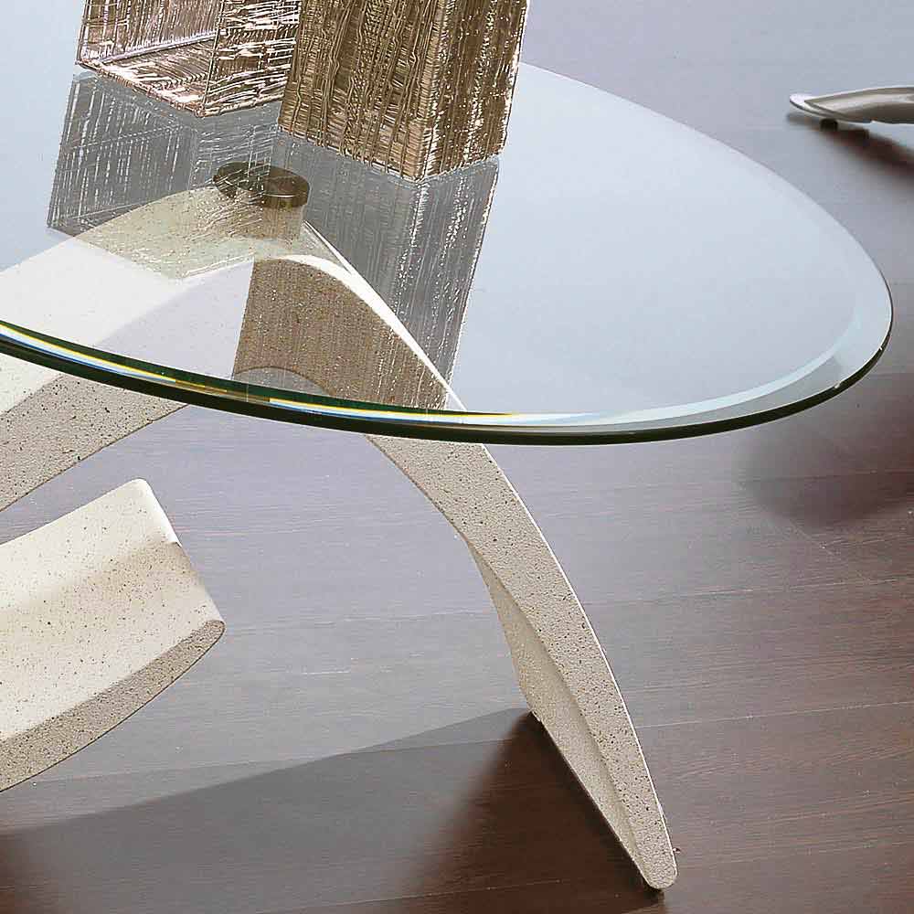 Tavolino da salotto realizzato in Italia con piano rotondo in vetro trasparente bisellato e basamento in mineral marmo, materiale ottenuto tramite l'impasto di polveri marmoree. Un design esclusivo ed elegante caratterizza questo complemento d'arredo dalla forte personalità raffinata ideale per arredare con carattere qualsiasi spazio living domestico portando con sè un tocco all'avanguardia. Grazie all'utilizzo di materie prime di alta qualità e alla lavorazione 100% Made in Italy nasce un tavolino pregiato e di valore che si distingue per eleganza e creatività nelle forme. Il basamento in mineral marmo offre al tavolino un'eccellente solidità e robustezza oltre a conferire all'estetica il suo forte stile moderno. La sua particolare figura caratterizzata da linee geometriche semplici crea una meravigliosa armonia con la forma morbida del piano in vetro donando al design del prodotto un senso estetico esclusivo.
