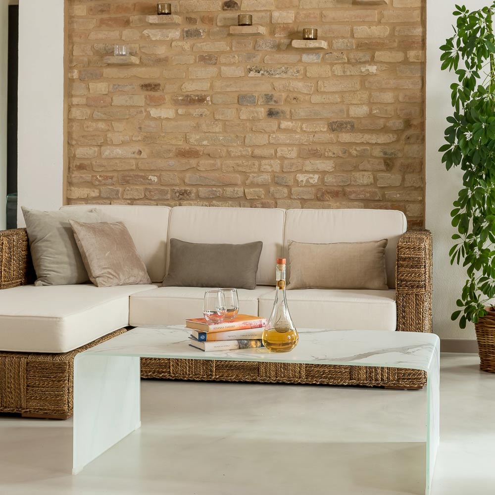 Questo tavolino dal design elegante e contemporaneo è realizzato in vetro curvato temperato da 10 mm con raffinata finitura effetto marmo, che dona all’ambiente un aspetto luminoso e sofisticato. La forma essenziale e la struttura monolitica ne esaltano la pulizia formale.