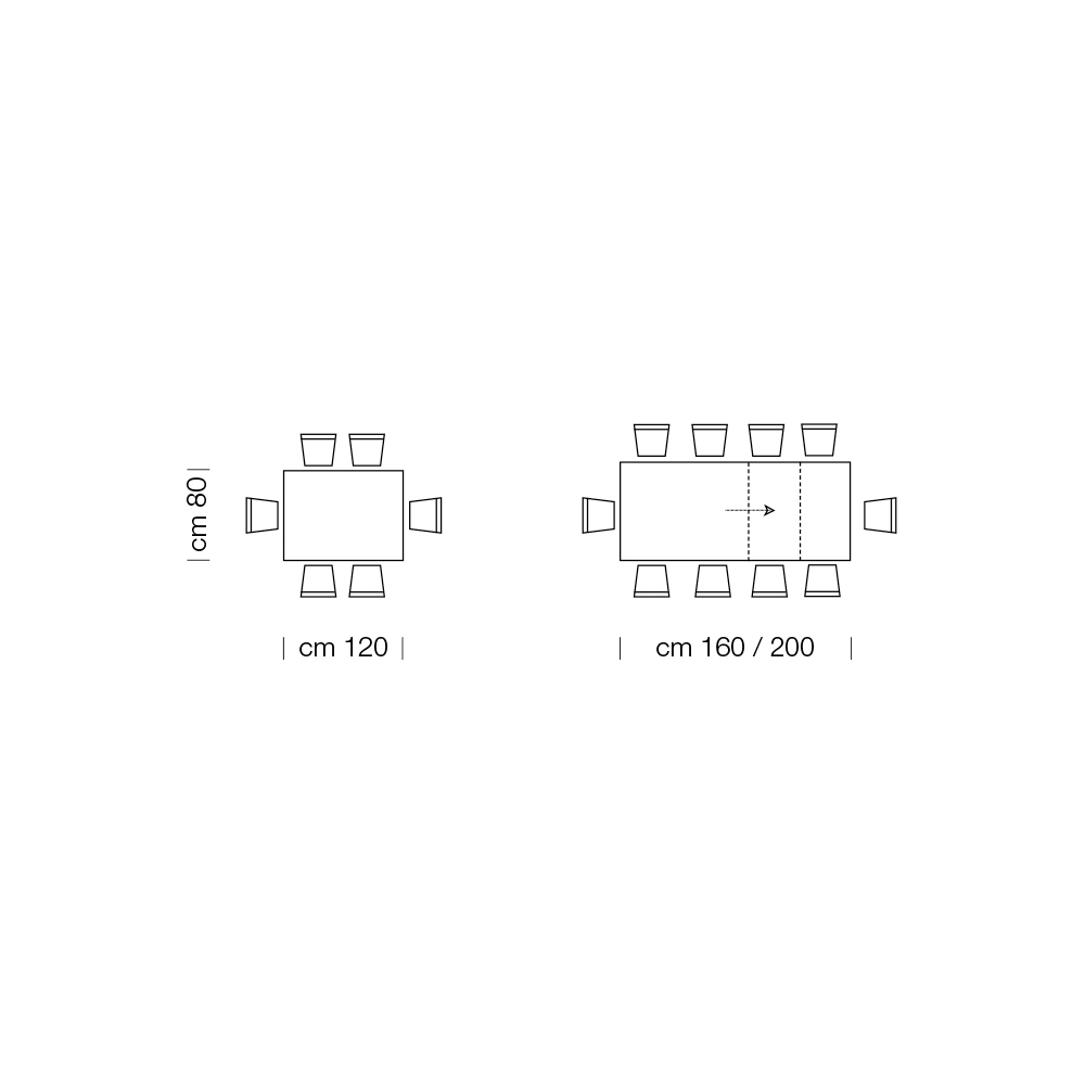 - L 120 (160) x P 80 x H 75 cm 8 posti allungabile con un'allunga da 40cm interna;