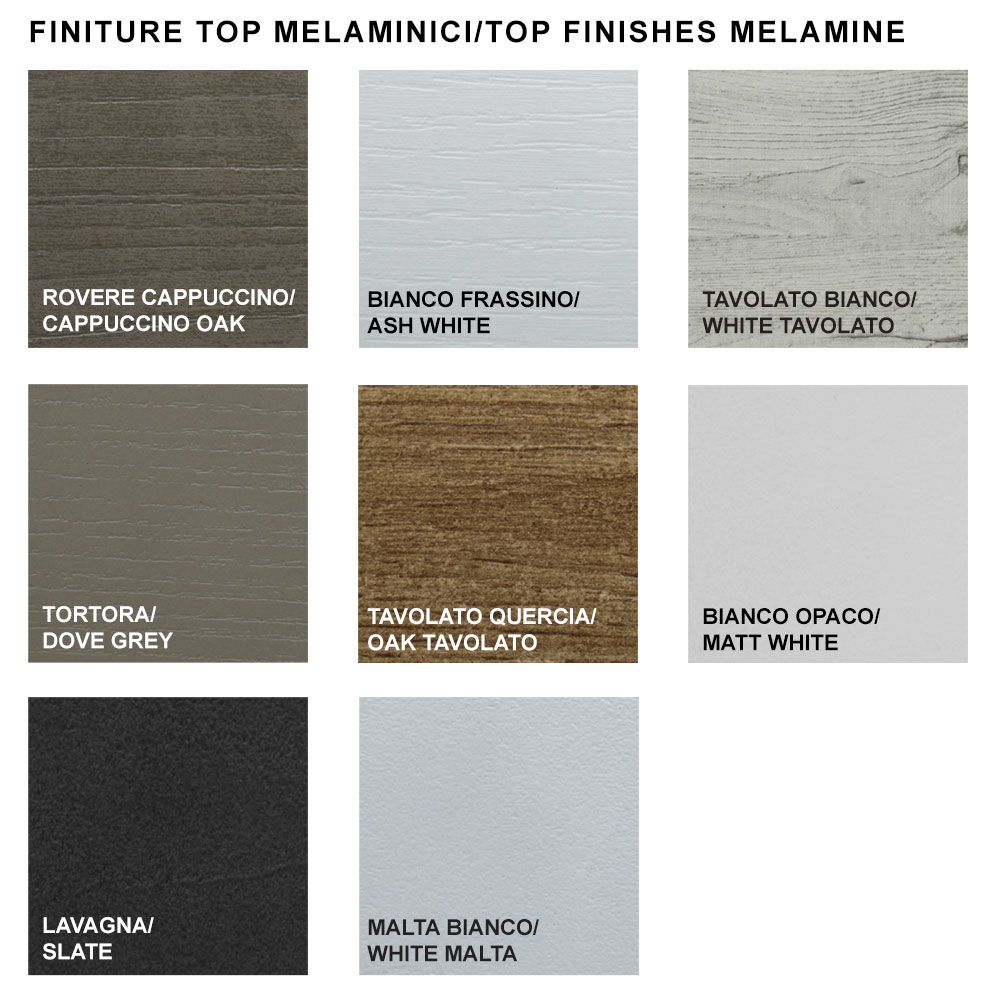 Il piano e la base del tavolo possono essere personalizzati con diverse finiture a campione o laccature RAL.