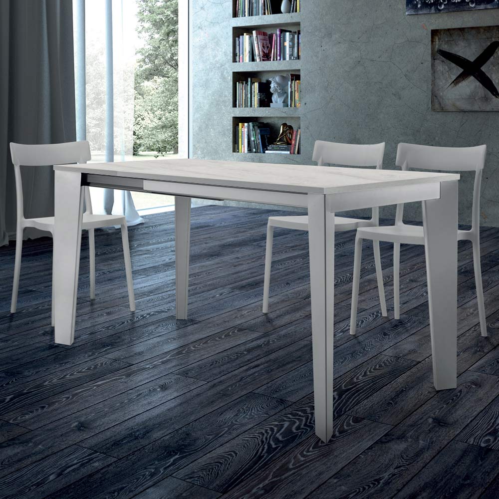 Tavolo da pranzo in legno melaminico allungabile fino a 310 cm prodotto in Italia artigianalmente.