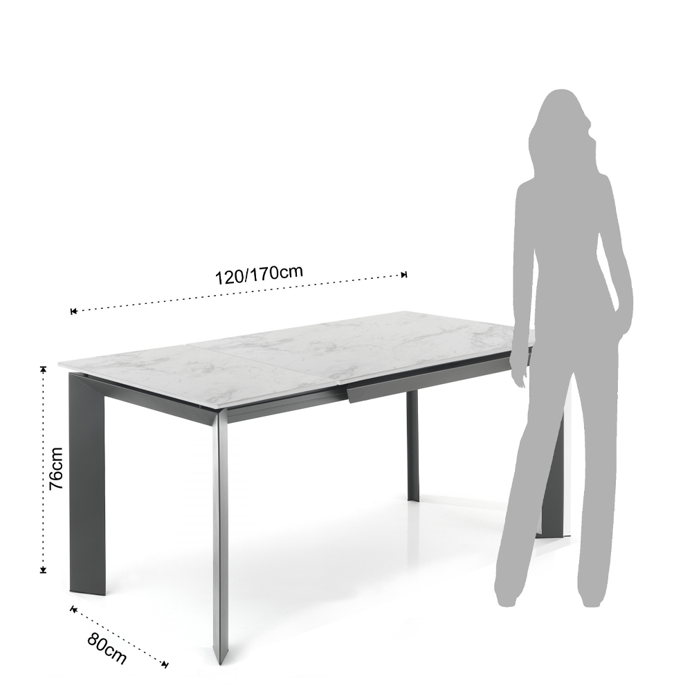 Tavolo allungabile da soggiorno in acciaio e ceramica