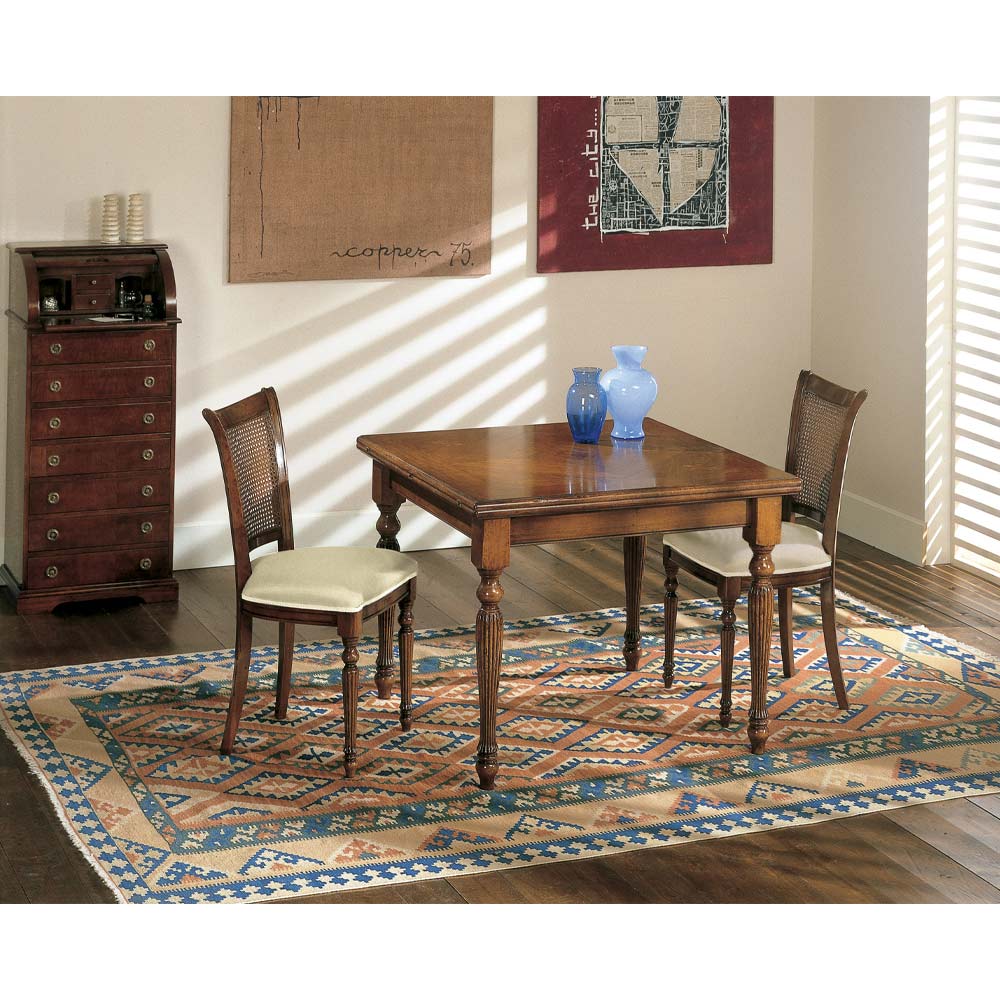 Tavolo da soggiorno con apertura a libro e 2 sedie in legno Made in Italy