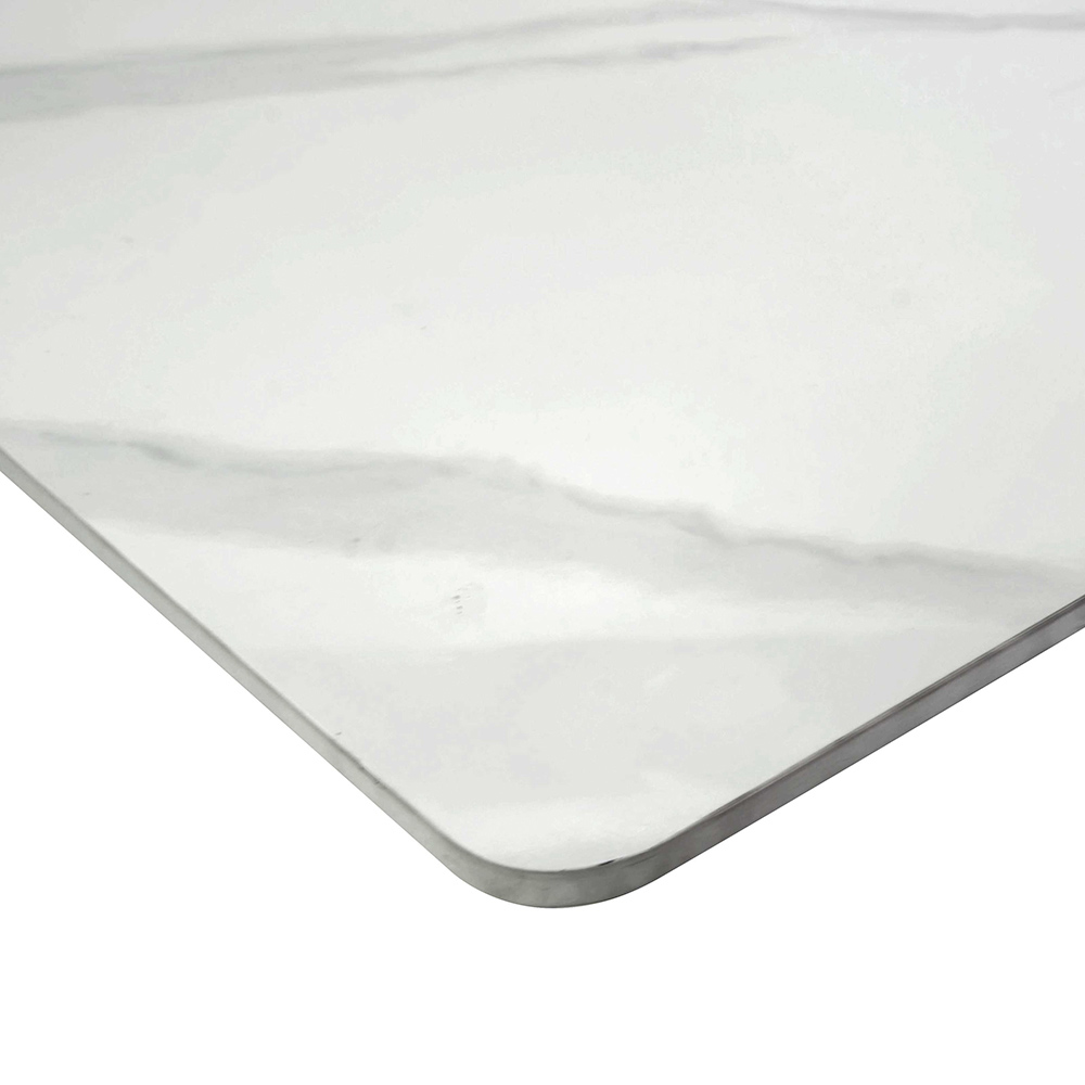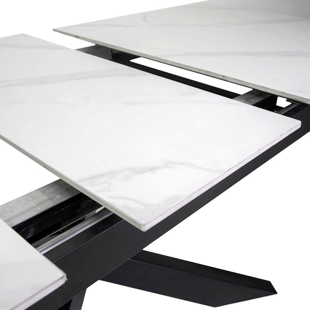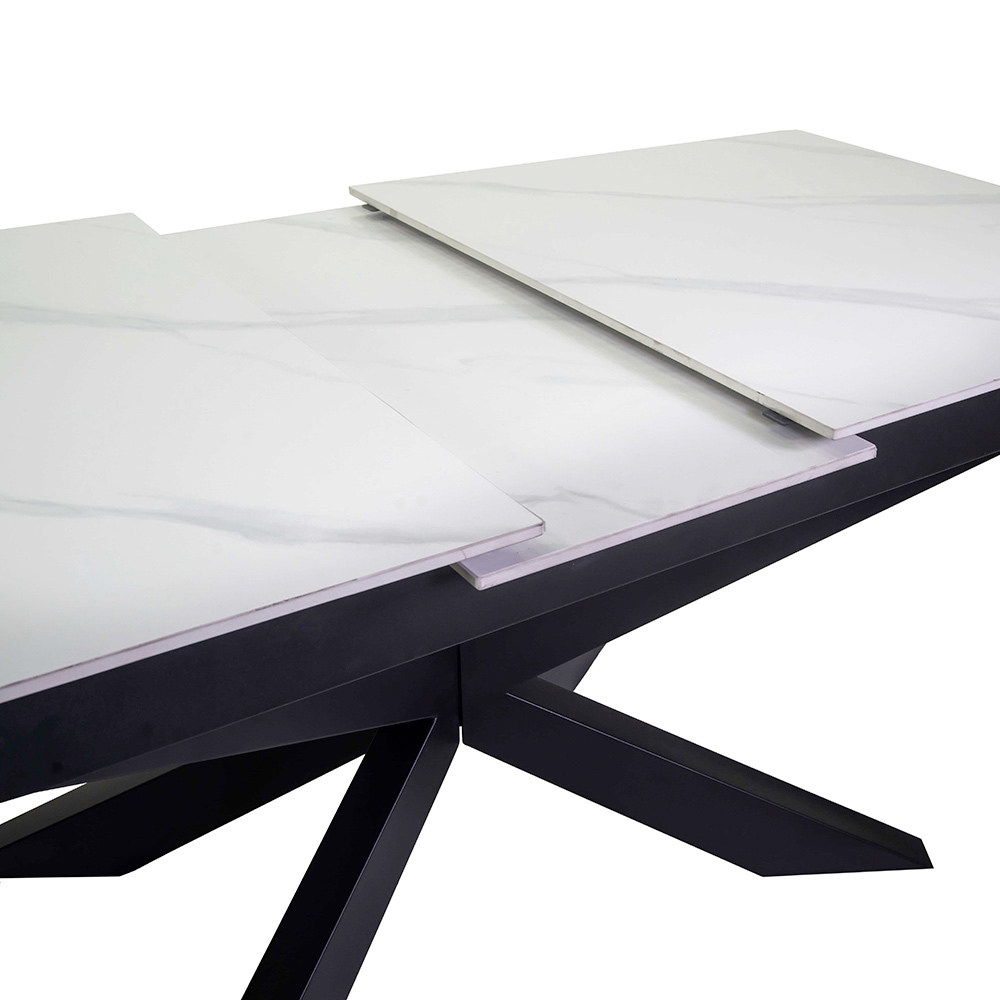 La pietra sinterizzata non solo garantisce durabilità e facilità di pulizia, ma aggiunge anche un tocco di lusso moderno grazie alle sue venature naturali e finiture eleganti. Questo tavolo si adatta perfettamente a ogni ambiente: dal soggiorno alla sala da pranzo, fino agli spazi contract.