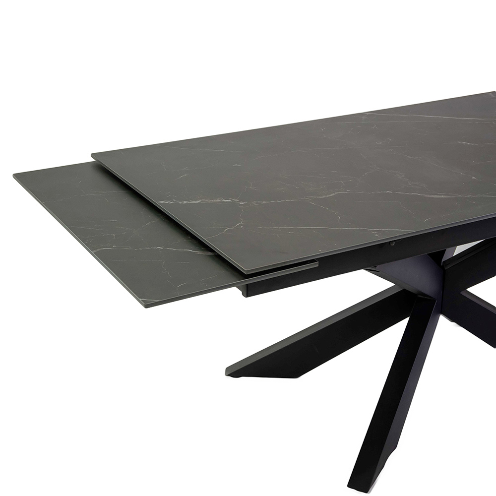 Scopri l’eleganza senza tempo e il design contemporaneo con questo tavolo da pranzo. La struttura è caratterizzata da gambe in metallo verniciate a polvere, un dettaglio che dona solidità e un look minimal ed industriale. Il top in pietra sinterizzata conferisce al tavolo una superficie resistente e raffinata, ideale per chi cerca un equilibrio perfetto tra funzionalità ed estetica.