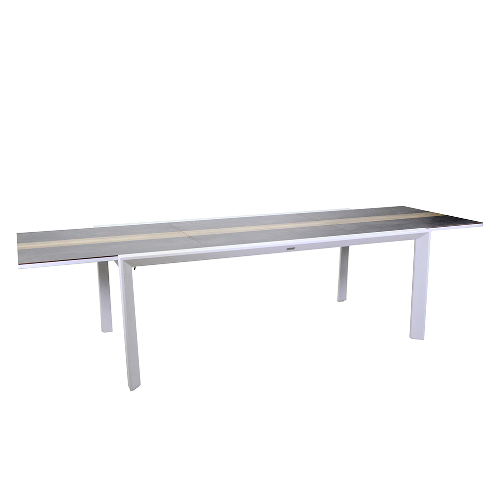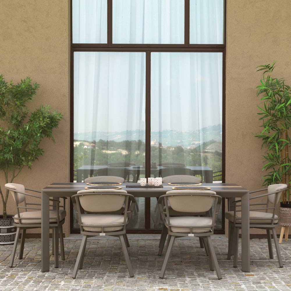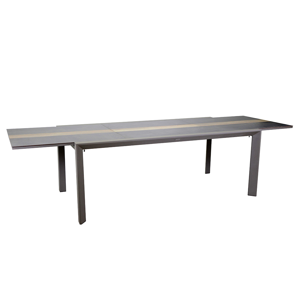 Dotato di un'apertura centrale a scorrimento, questo tavolo offre una flessibilità unica, permettendoti di estenderlo facilmente quando necessario, rendendolo perfetto per ospitare amici e famiglia. La superficie in HPL è inoltre notoriamente resistente agli agenti atmosferici e facile da pulire, assicurando un investimento durevole e di facile manutenzione.