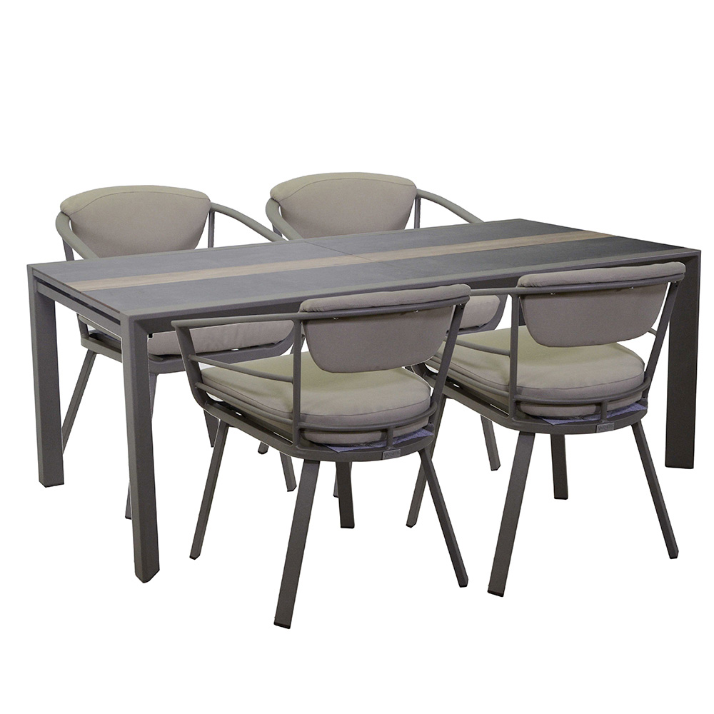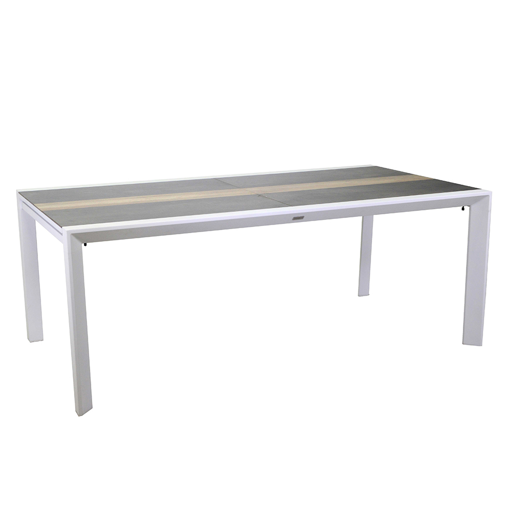 Scopri l'eleganza e la funzionalità di questo tavolo con struttura in alluminio verniciato a polvere, progettato per aggiungere un tocco di stile e resistenza ai tuoi spazi esterni. Il piano del tavolo in HPL (High Pressure Laminate) di spessore 6mm garantisce durata e un'estetica raffinata, con la sua finitura composta da 9 pannelli color legno che si integrano armoniosamente nel design moderno.