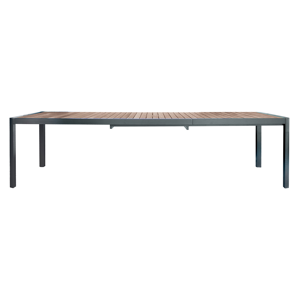 Il piano del tavolo è realizzat in legno di teak di alta qualità, noto per la sua durabilità e resistenza agli agenti atmosferici. Il teak, con le sue calde tonalità naturali, aggiunge un tocco di calore e raffinatezza al tuo spazio esterno. Le gambe in alluminio robusto e leggero offrono una stabilità eccellente e una resistenza alla corrosione, garantendo che il tavolo mantenga la sua bellezza nel tempo.