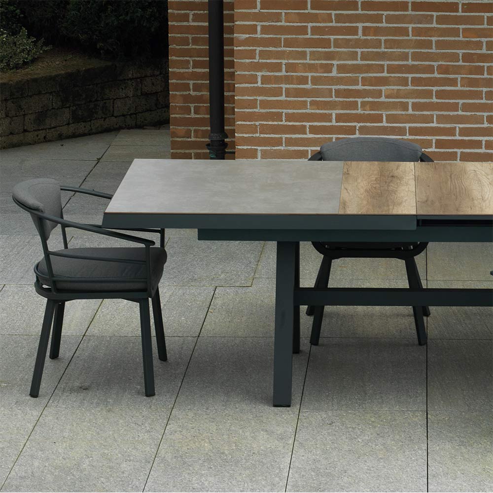 Il sistema di allunga centrale automatica rende questo tavolo estremamente pratico, permettendoti di adattarlo facilmente al numero di ospiti. Questa caratteristica, unita al suo design pulito e alla robusta costruzione, rende il tavolo un'aggiunta indispensabile per chi ama intrattenere all'aperto.