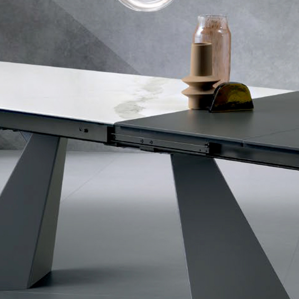 Tavolo rettangolare allungabile con piano in vetroceramica, sp. 10/11 mm.