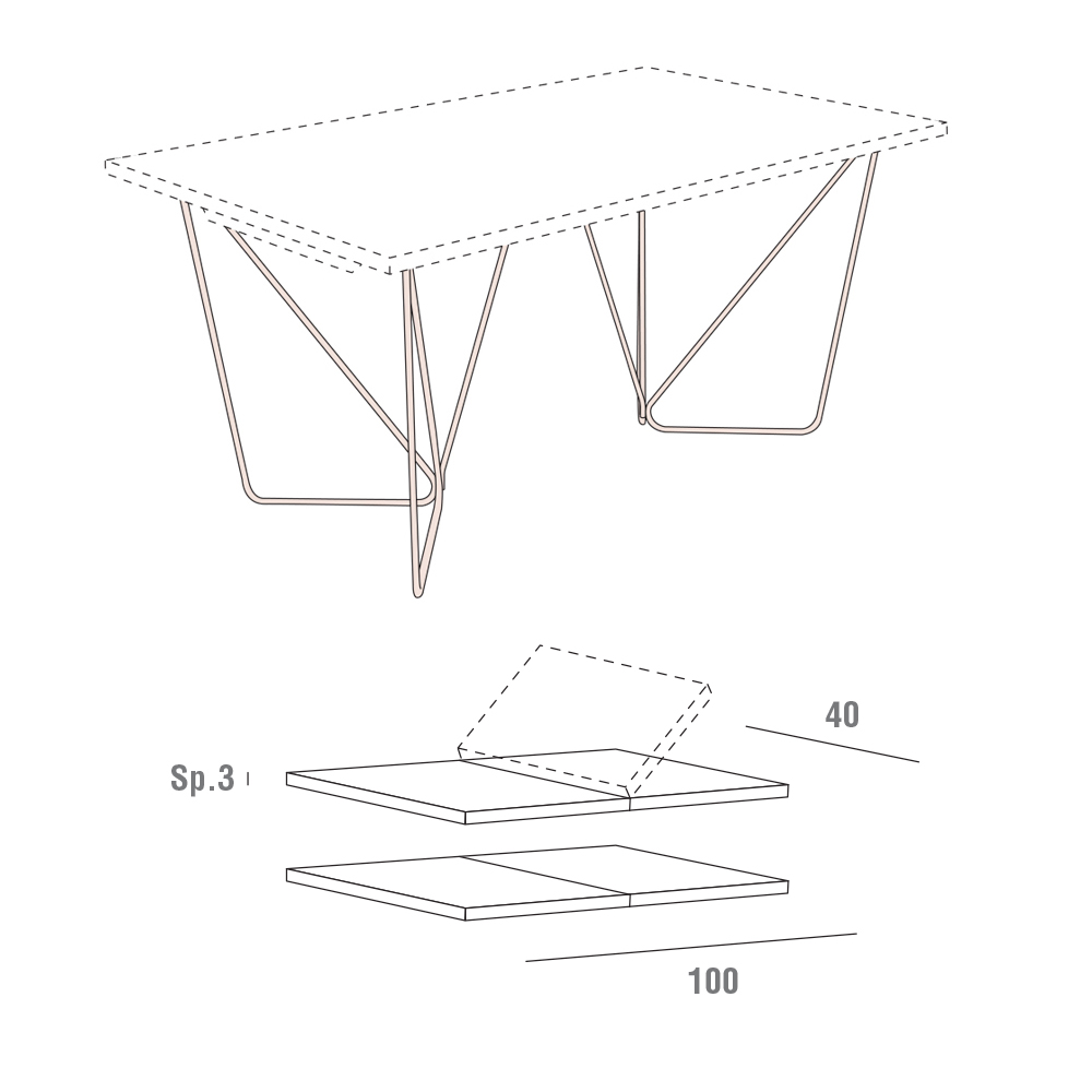 due allunghe laterali (40 cm ciascuna) in tinta col piano con meccanismo di apertura a libro. In questo modo il tavolo diventa una soluzione d'arredo particolarmente indicata per chi ama organizzare pranzi e cene ospitando amici e parenti per meravigliosi momenti in compagnia tornando ad occupare uno spazio più contenuto una volta richiuso. Ad accrescere il pregio e il valore del tavolo è la scelta di utilizzare il fenix, materiale che tramite l'utilizzo di