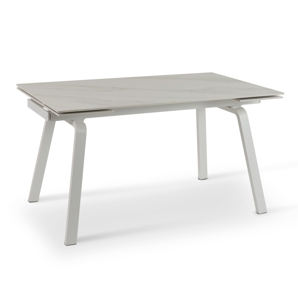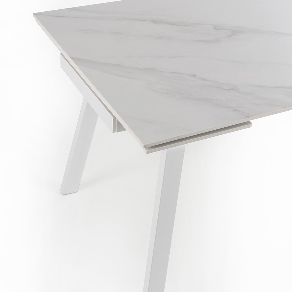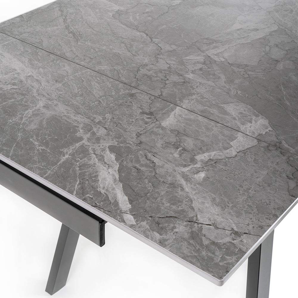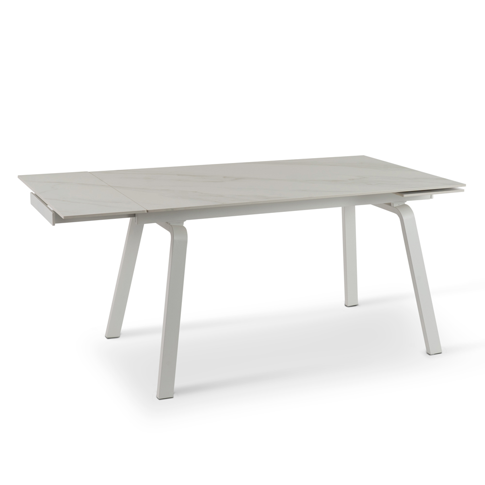 Tavolo allungabile da pranzo in pietra sinterizzata effetto marmo e metallo