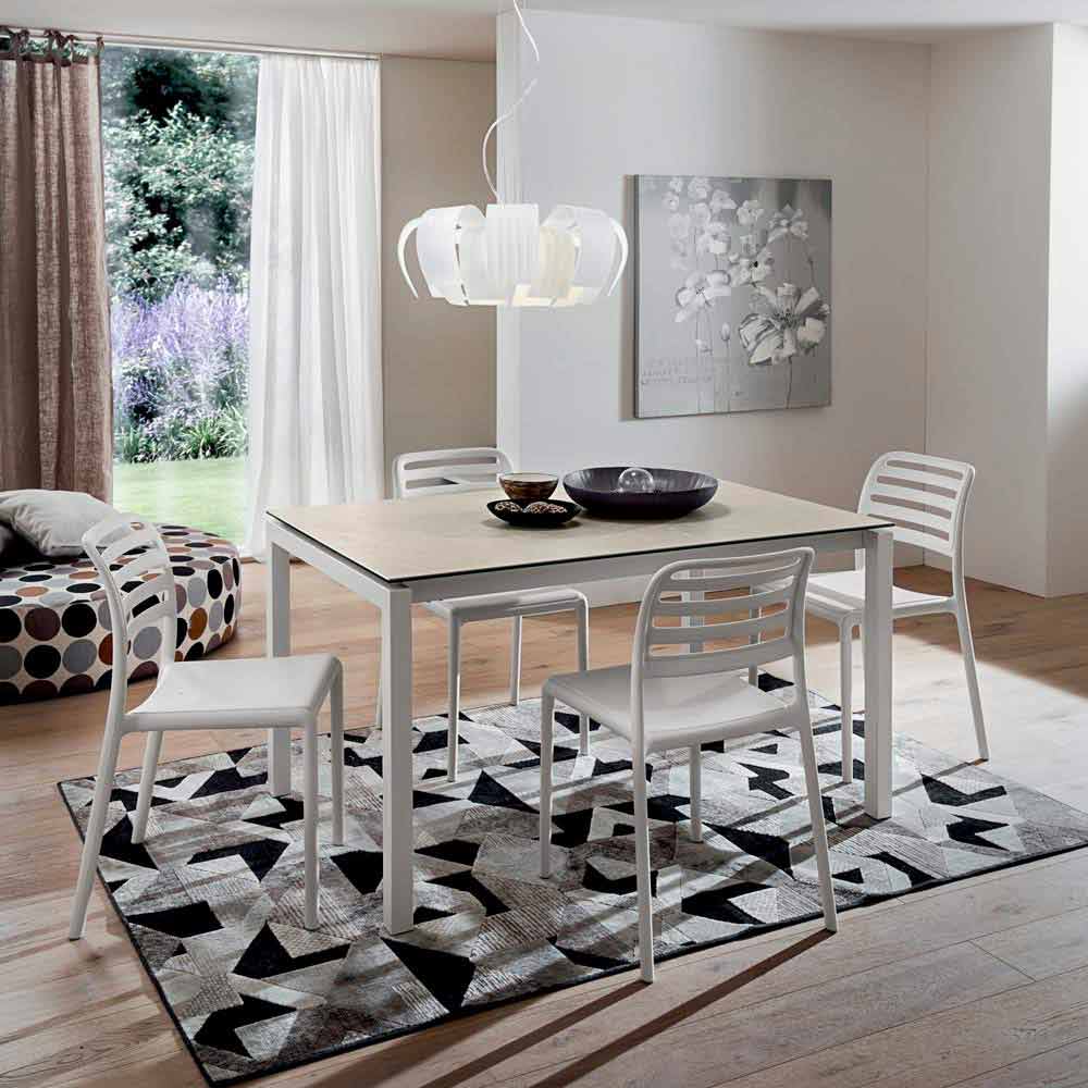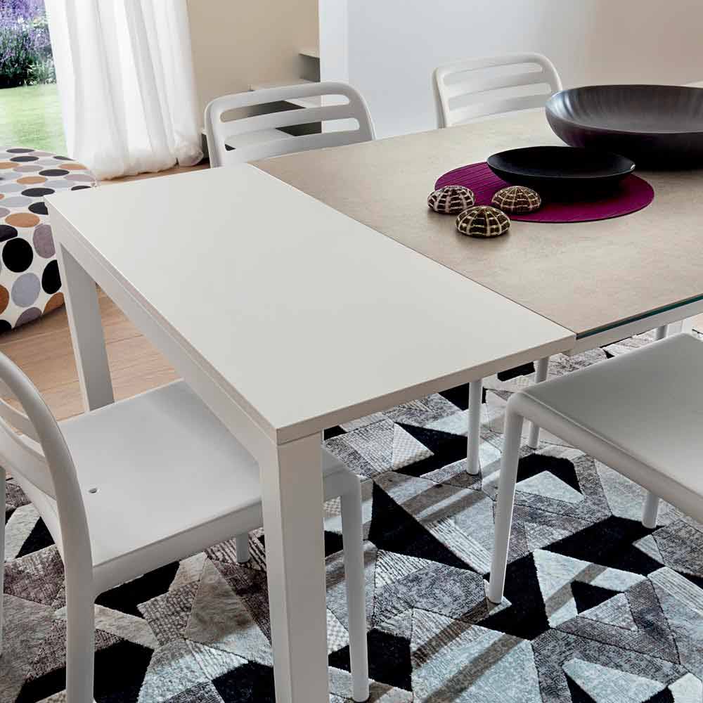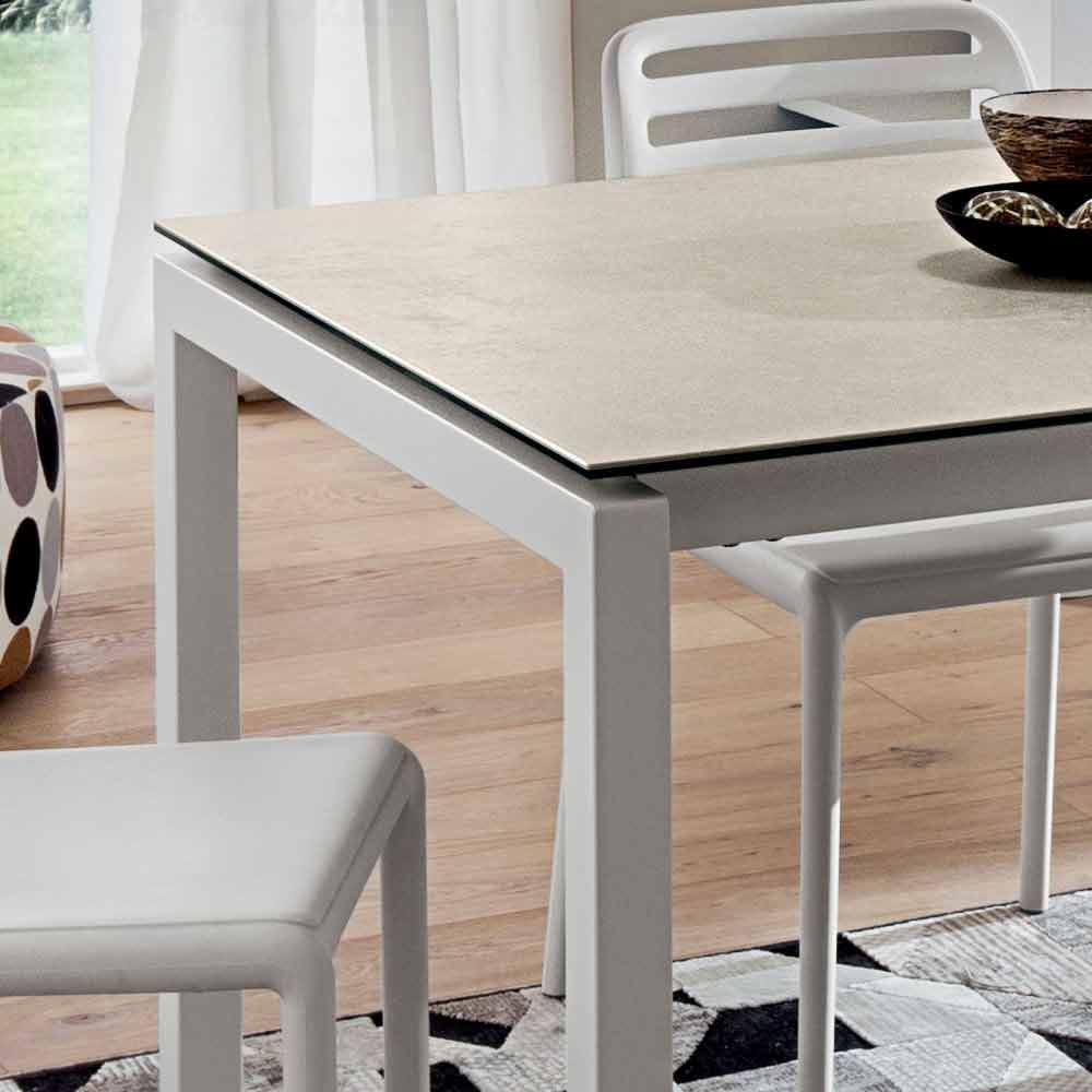 Tavolo cucina con piano allungabile in laminam e metallo Made in Italy.