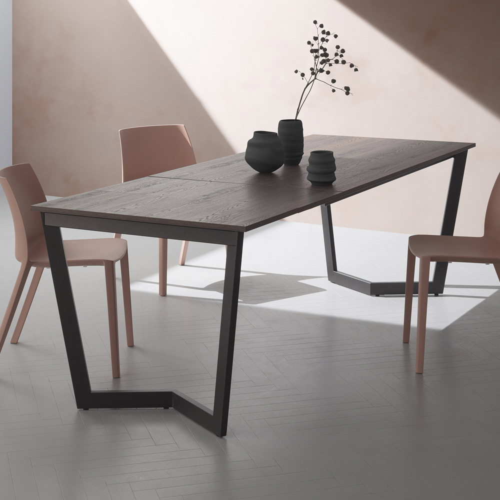 Tavolo da pranzo allungabile fino a 238 cm in hpl e metallo verniciato Made in Italy.