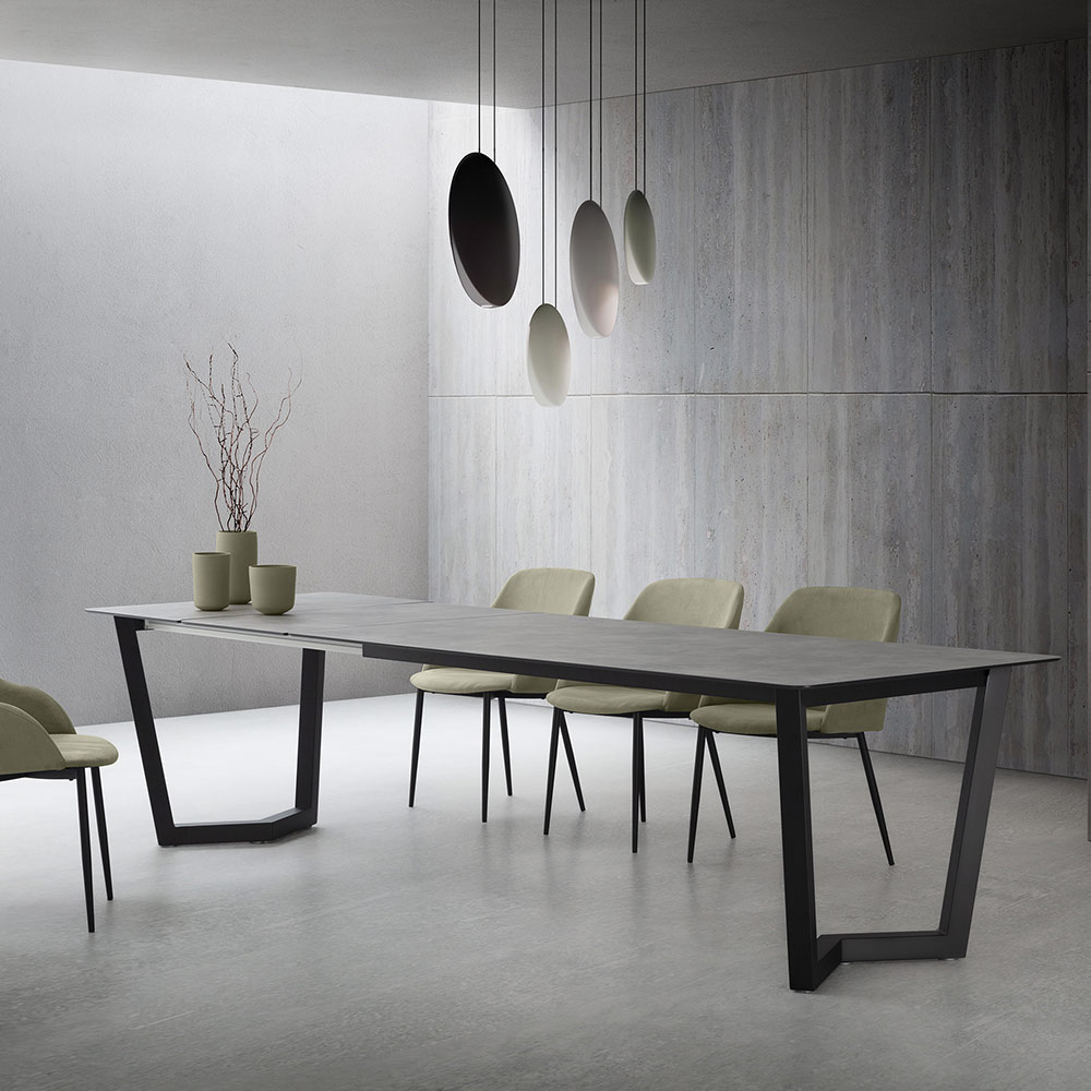 Tavolo da pranzo allungabile fino a 300 cm con struttura in metallo Made in Italy.