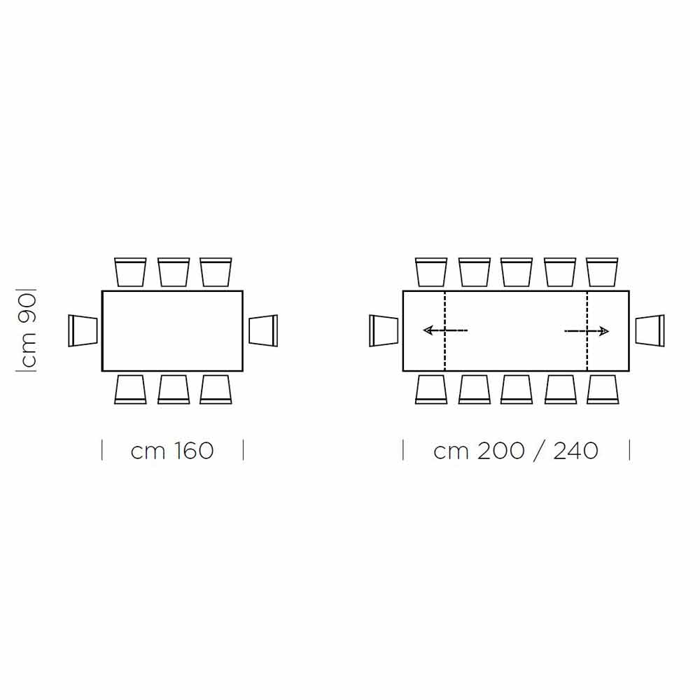 - L 160/240 x P 90 x H 75,5 cm 12 posti (2 allunghe da 40 cm);