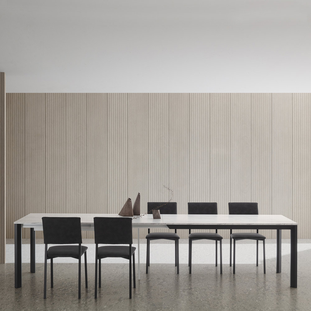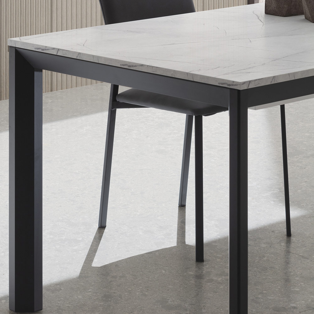 Tavolo sala da pranzo allungabile con base in alluminio e piano hpl Made in Italy.
