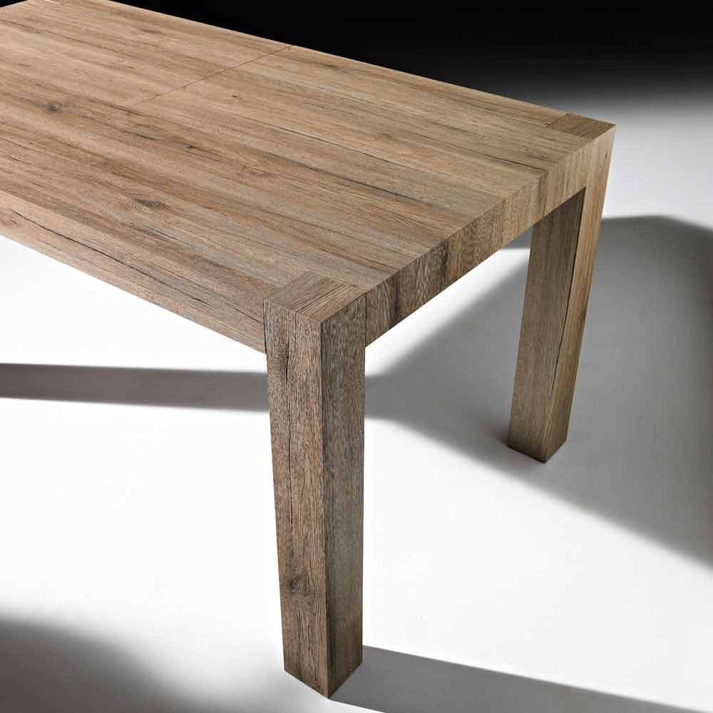 Il tavolo da pranzo Oky è realizzato in melaminico con finitura oak natura. Dispone di 4 pratiche allunghe da 40 cm ciascuna che consentono di estendere il tavolo fino a raggiungere una superficie di 300 cm, tramite un pratico e veloce sistema di allungamento su binari scorrevoli.