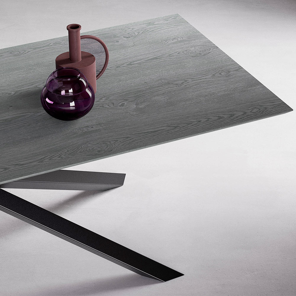 Tavolo allungabile con piano rovere grey e gambe grafite Made in Italy.