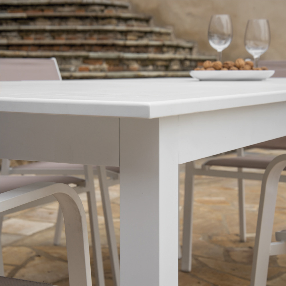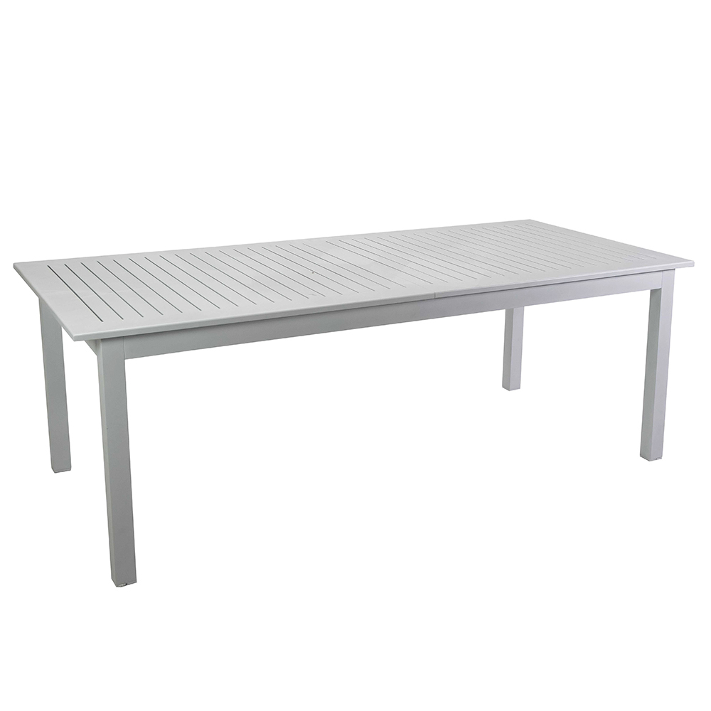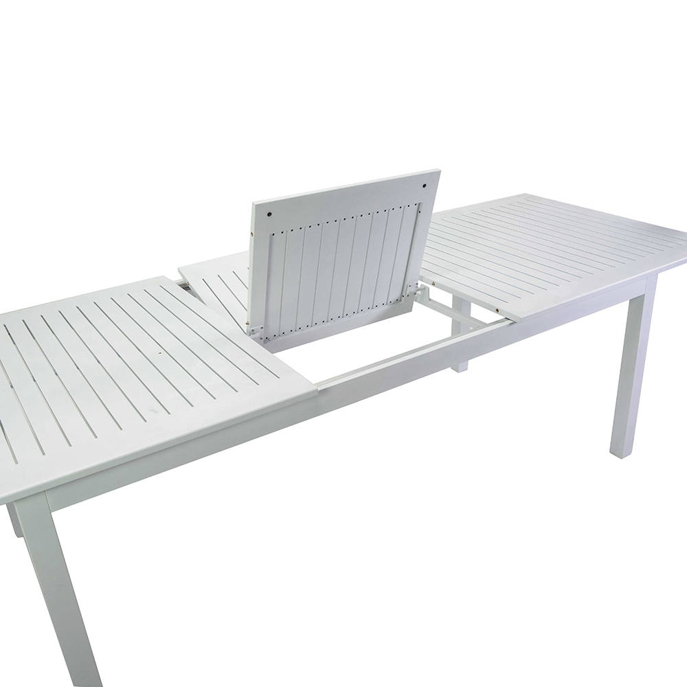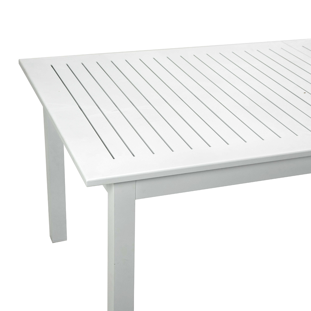 Questo tavolo allungabile in alluminio è la soluzione perfetta per ospitare sia piccoli incontri familiari che grandi festività all'aperto. La sua struttura in alluminio garantisce durabilità e stabilità, resistendo agli elementi esterni senza sforzo. Con un design elegante e pulito, si adatta perfettamente a qualsiasi ambiente esterno, da un patio moderno a un giardino più classico.