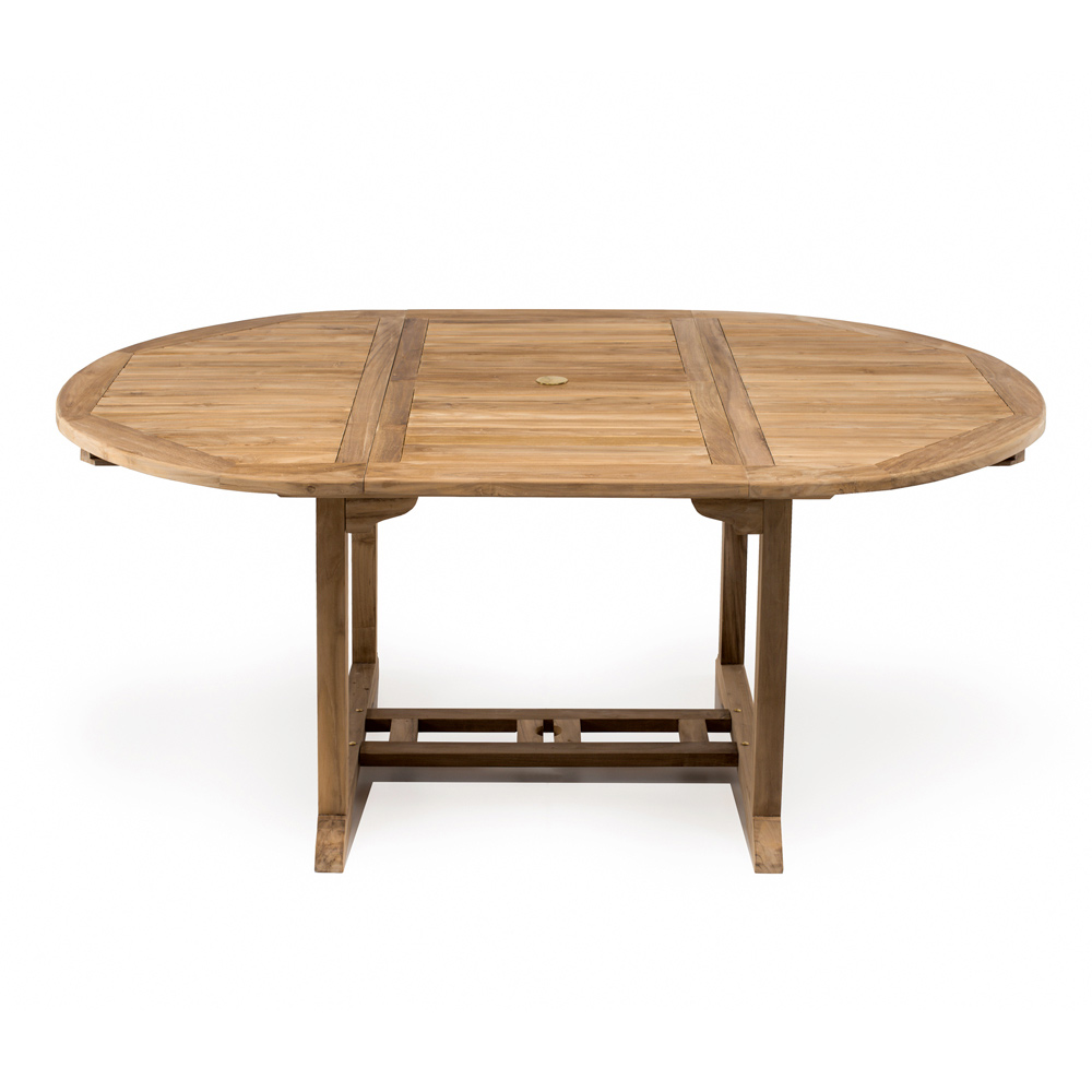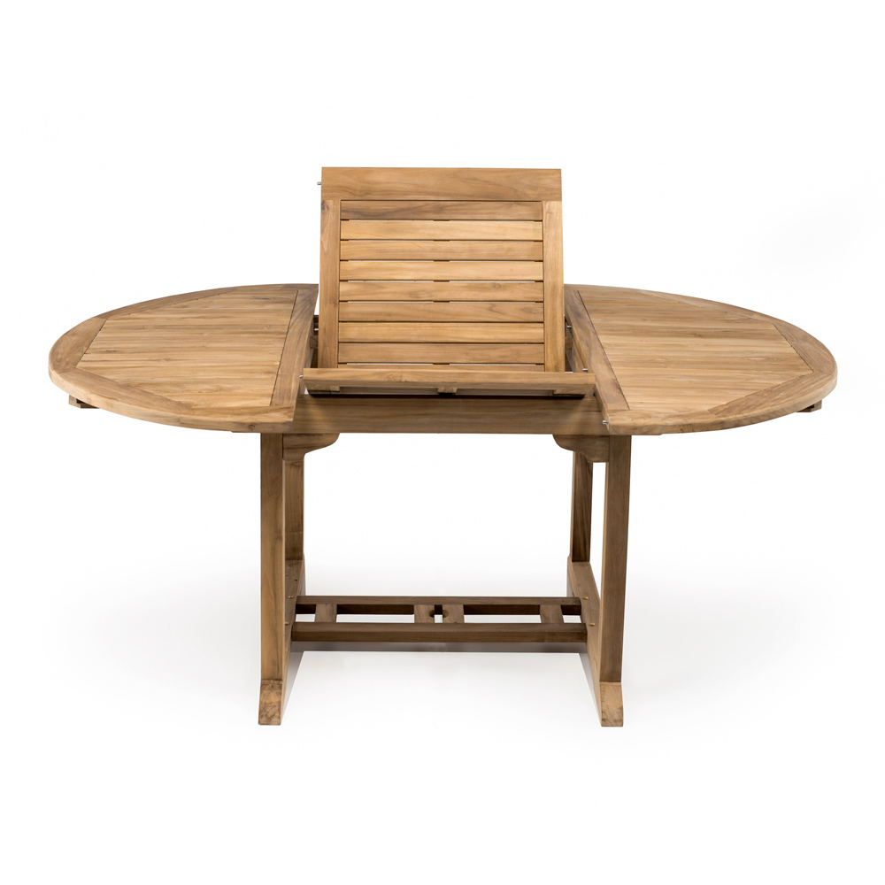 Tavolo allungabile outdoor realizzato in legno di teak naturale. Il legno di teak utilizzato è di origine indonesiana, proveniente da foreste ad abbattimento controllato e sostenibile (INDONESIAN LEGAL WOOD). È un materiale estremamente durevole, stabile, resistente agli agenti atmosferici, ai funghi, agli attacchi di parassiti e insetti. Contiene alti livelli di oli naturali che lo rendono resistente e limitano l'assorbimento di umidità.