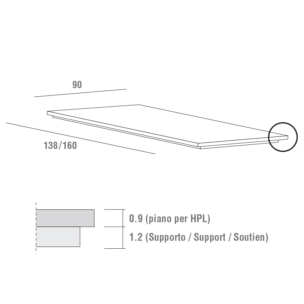 NB: il piano e la base del tavolo sono disponibili in una vasta gamma di finiture differenti. Non si garantisce la continuità della venatura tra piano e allunga