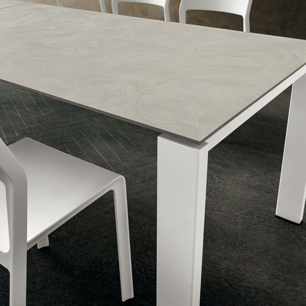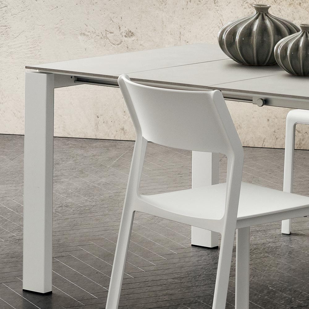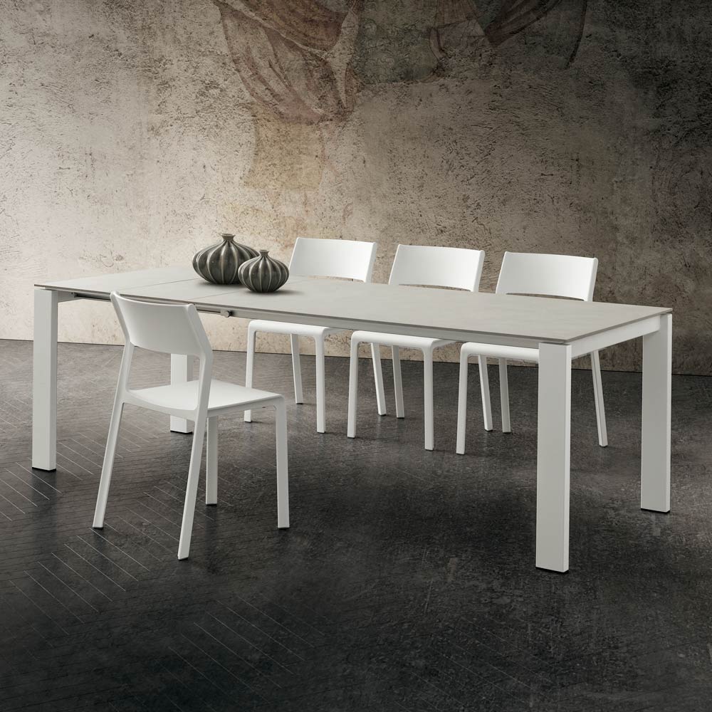Tavolo da pranzo allungabile in hpl e metallo laccato bianco Made in Italy, pregiato.