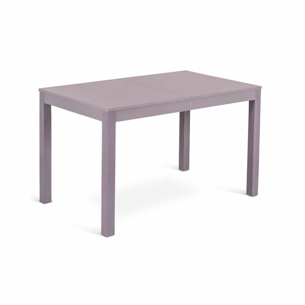 Tavolo con base in legno di faggio massello e top melaminico. Dispone di 2 allunghe da 40 cm l'una, alloggiate all’interno del tavolo. Disponibile in diverse colorazioni.