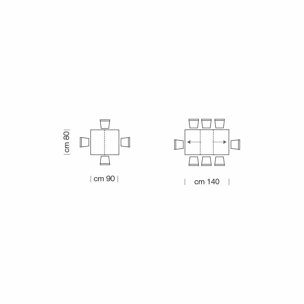 - L 90 (140) x P 80 x H 77 cm 8 posti allungabile con un'allunga da 50cm interna;