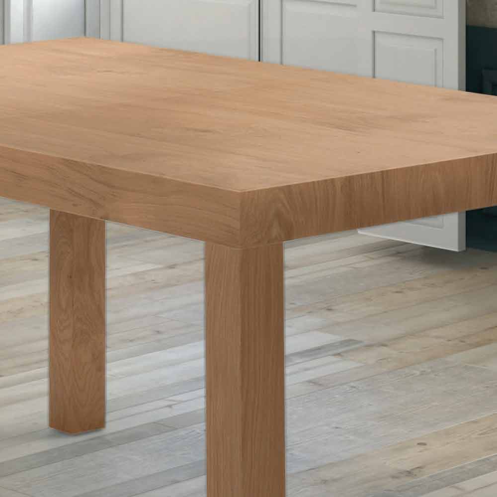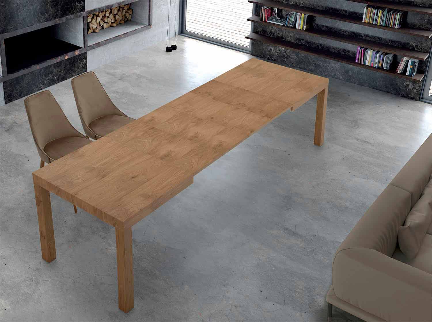 Tavolo da pranzo allungabile fino a 470 cm prodotto in Italia artigianalmente in legno impiallacciato rovere nodato.