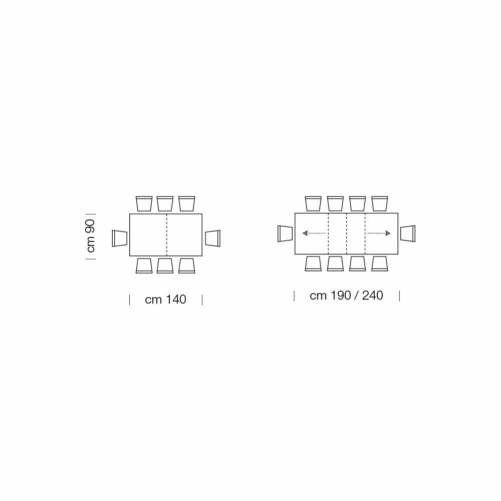 - L 140 (240) x P 90 x H 77 cm 10 posti allungabile con due allunghe da 50cm ciascuna interne;