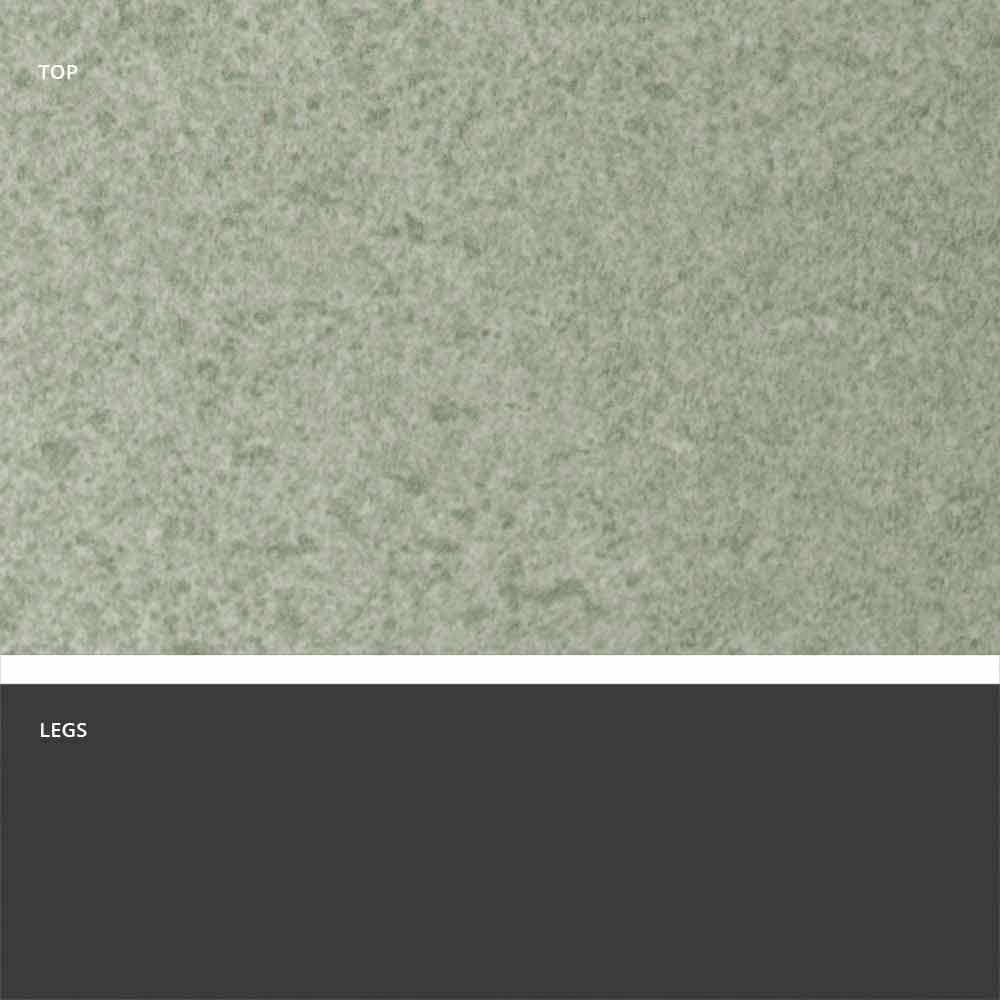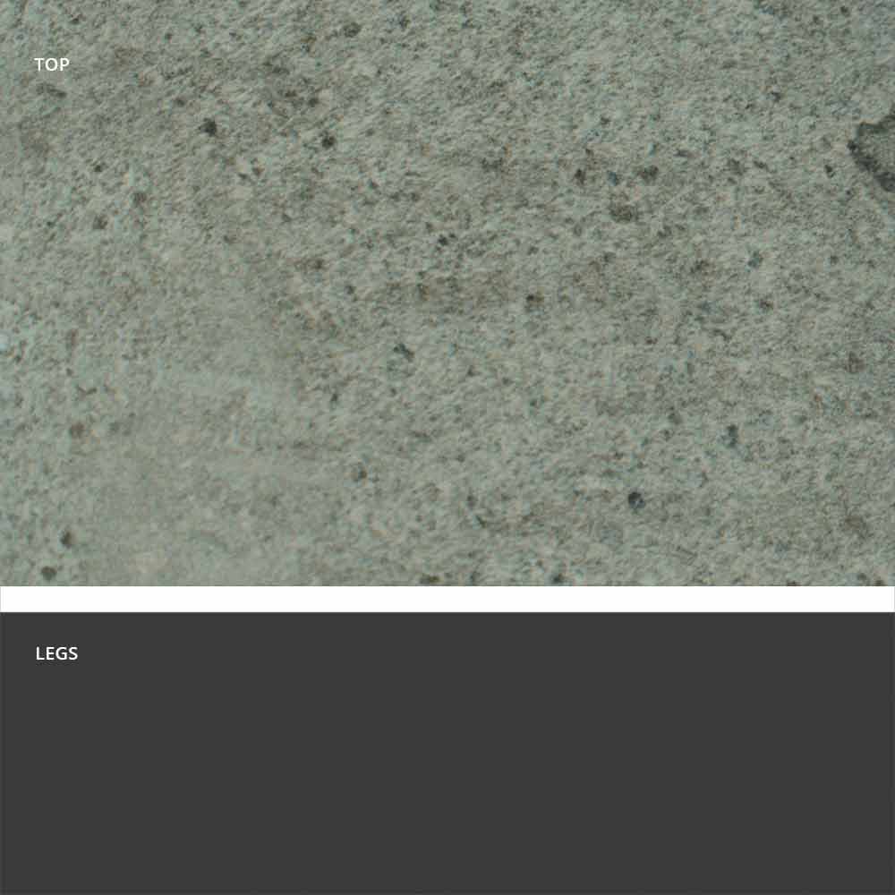 - base in metallo grigio nero (RAL 7021) e piano in gres in finitura basaltina sabbia;