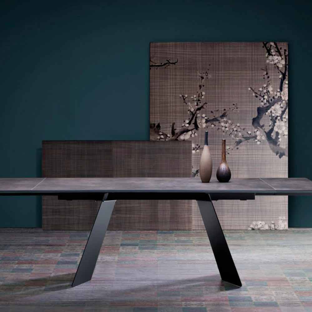 Tavolo allungabile di design moderno con piano in gres, Erve