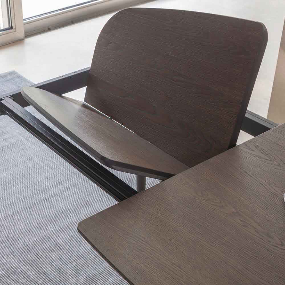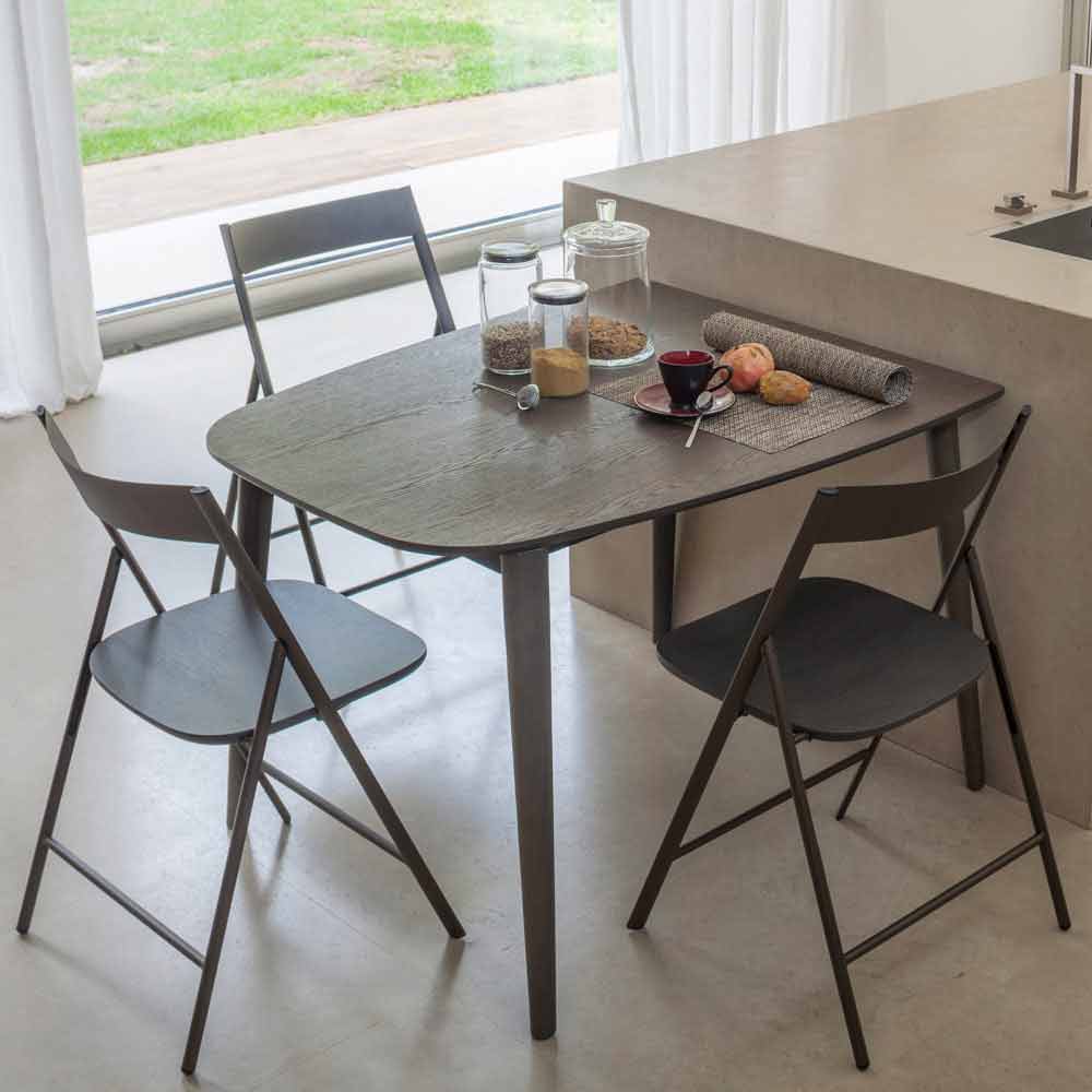 Tavolo da pranzo allungabile e sagomato in legno impiallacciato made in Italy.