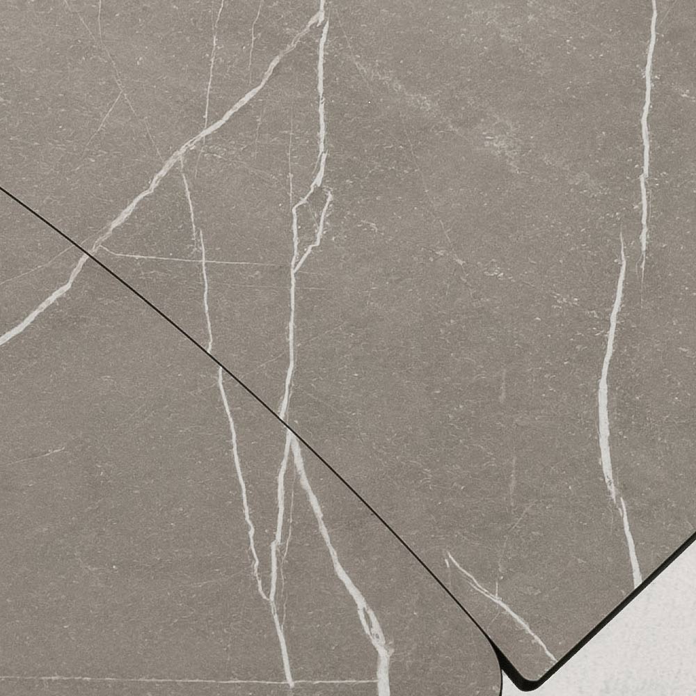 Il piano in HPL con venature offre un’estetica raffinata e naturale, con una superficie resistente, ideale per l’uso quotidiano. Grazie al sistema di allungamento con prolunghe laterali, il tavolo si estende con estrema facilità, adattandosi a pranzi in famiglia o serate con amici.