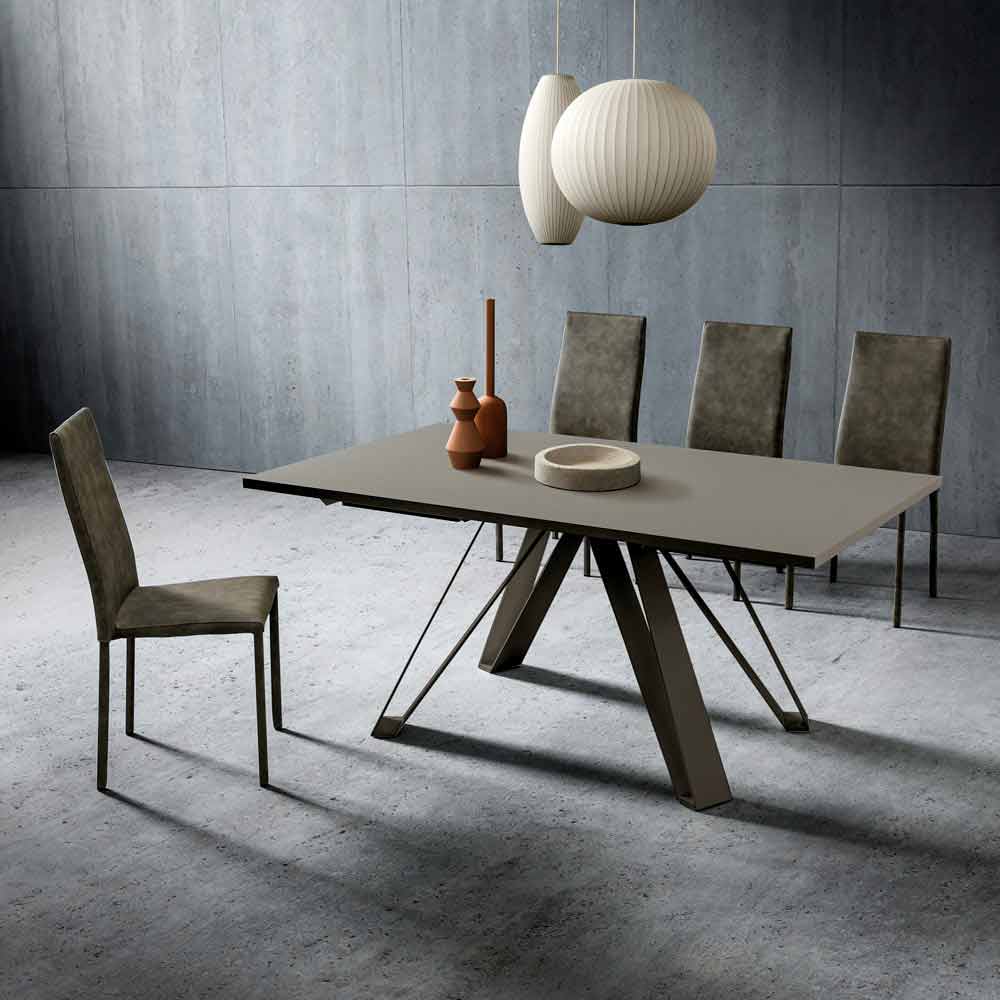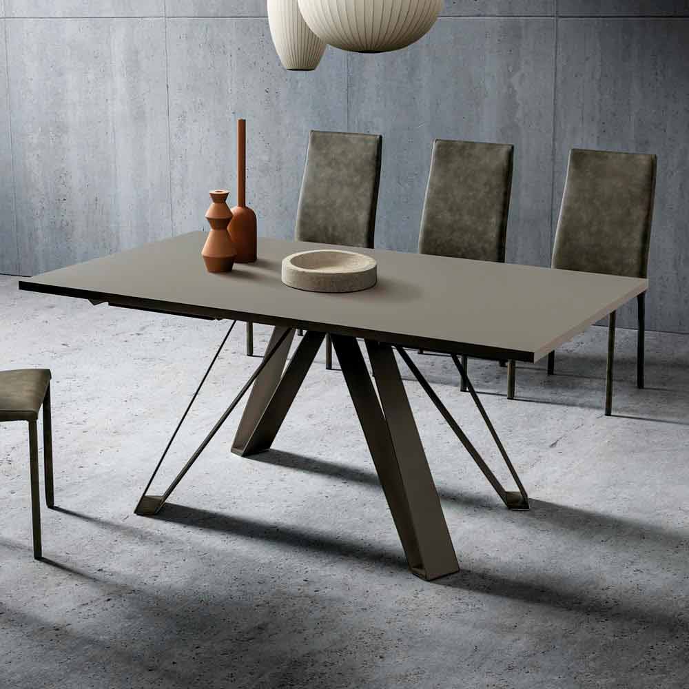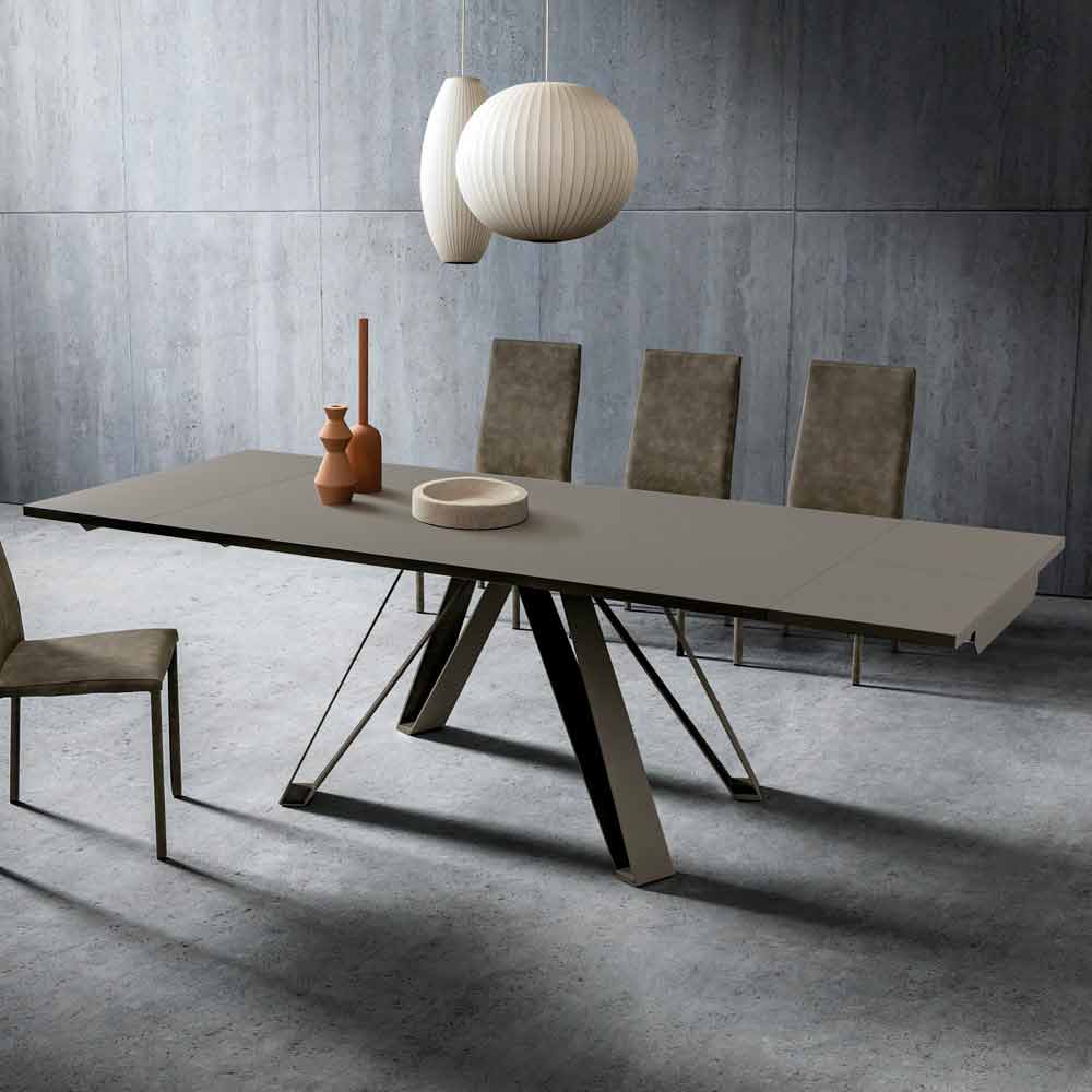 Tavolo cucina allungabile in fenix e metallo verniciato Made in Italy, di lusso.