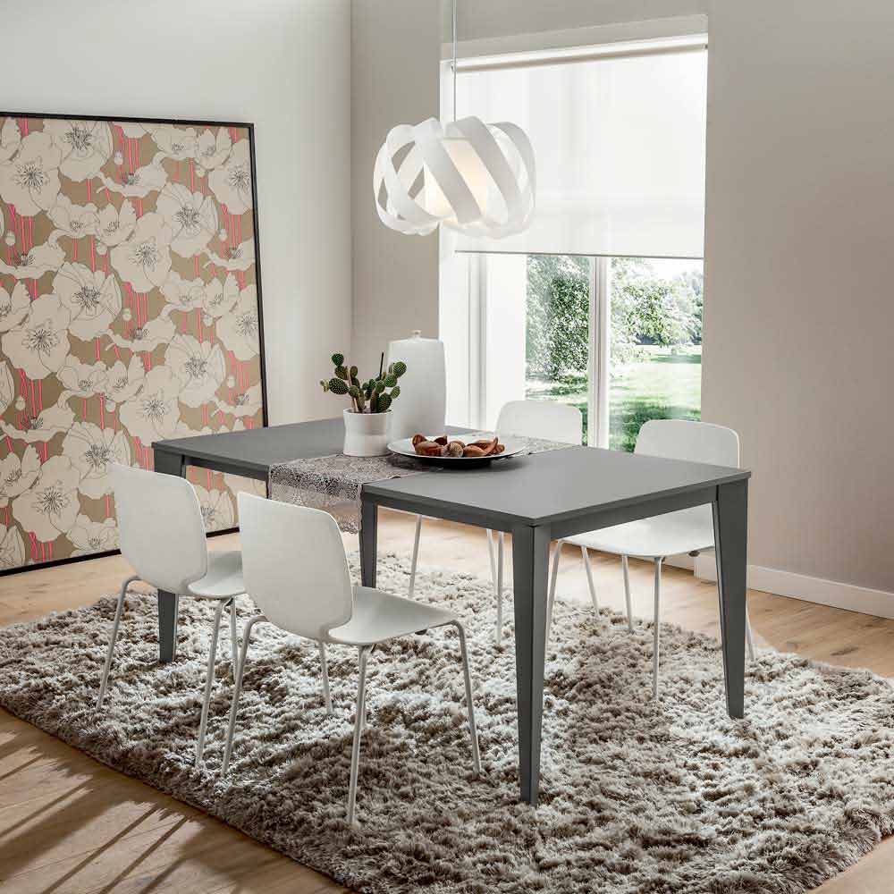 Tavolo da pranzo in fenix con struttura in metallo laccato Made in Italy.