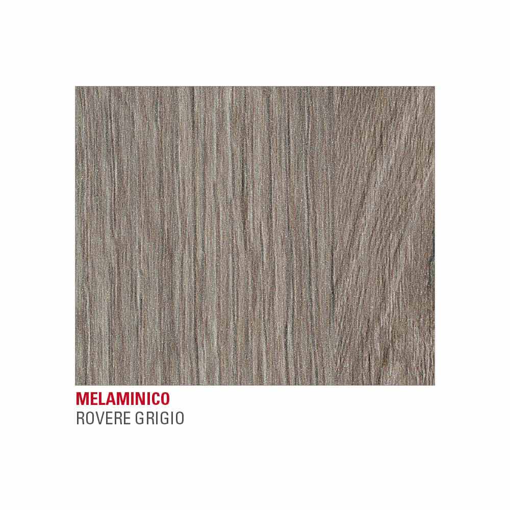 forte impatto visivo. Ciò che ne sottolinea il carattere moderno e ne completa l'estetica sono le splendide venature del legno offerte dal melaminico, un materiale che nasce dalla pressatura di