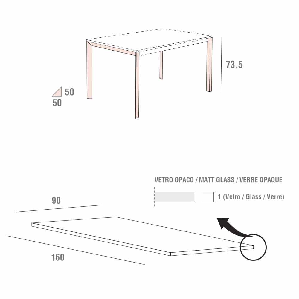 tocco di eleganza dato dal vetro e dalla particolare finitura opaca che ne accrescono ancor di più il pregio. Questo meraviglioso tavolo presenta inoltre uno spiccato lato funzionale dato dall'utilizzo di