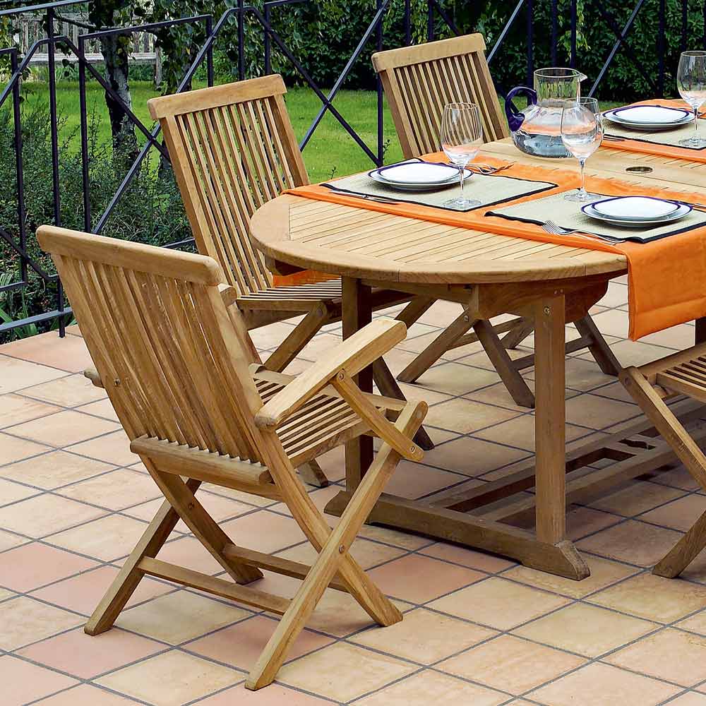 Tavolo allungabile per il giardino in teak con sedie e poltroncine .