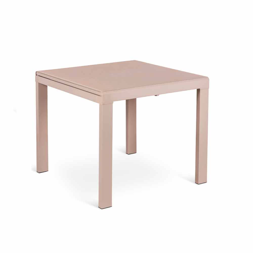 Tavolo moderno con base in metallo verniciato e top in vetro acidato. Disponibile in diverse colorazioni.