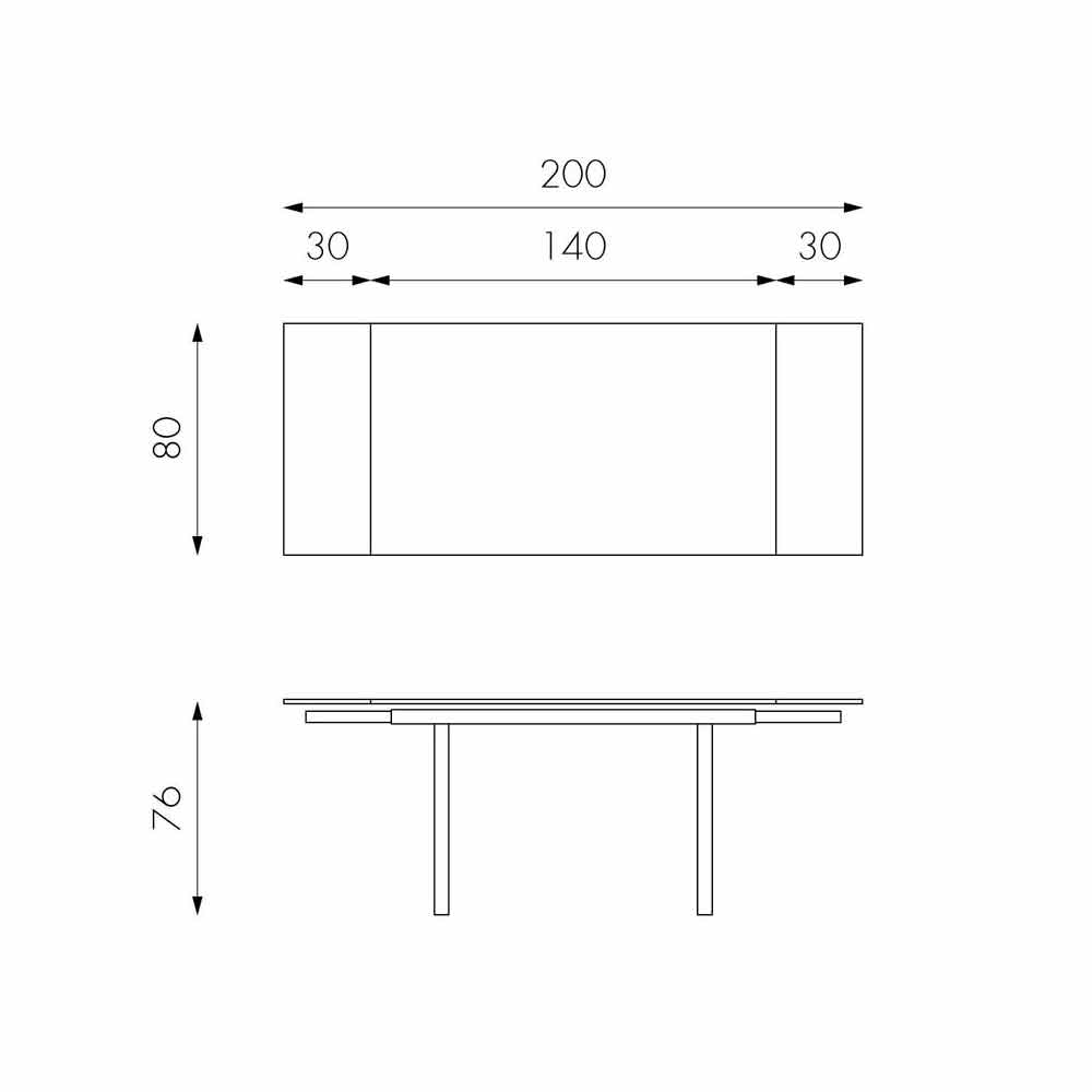 Nardo è un tavolo allungabile fino a 200 cm con dimensione: l.140/200 x p.80 x h.76 cm .