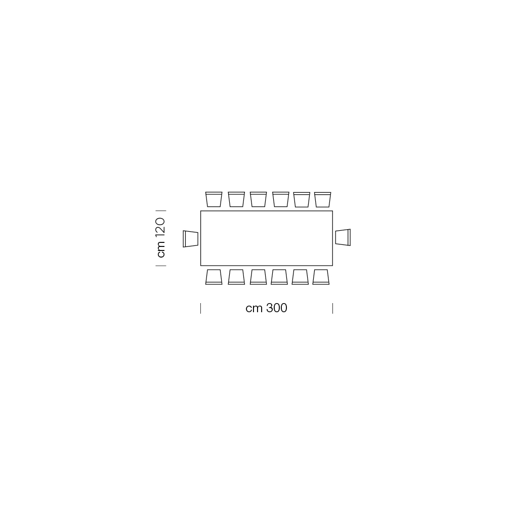 - L 300 x P 120 x H 73,5 cm (14 posti).
