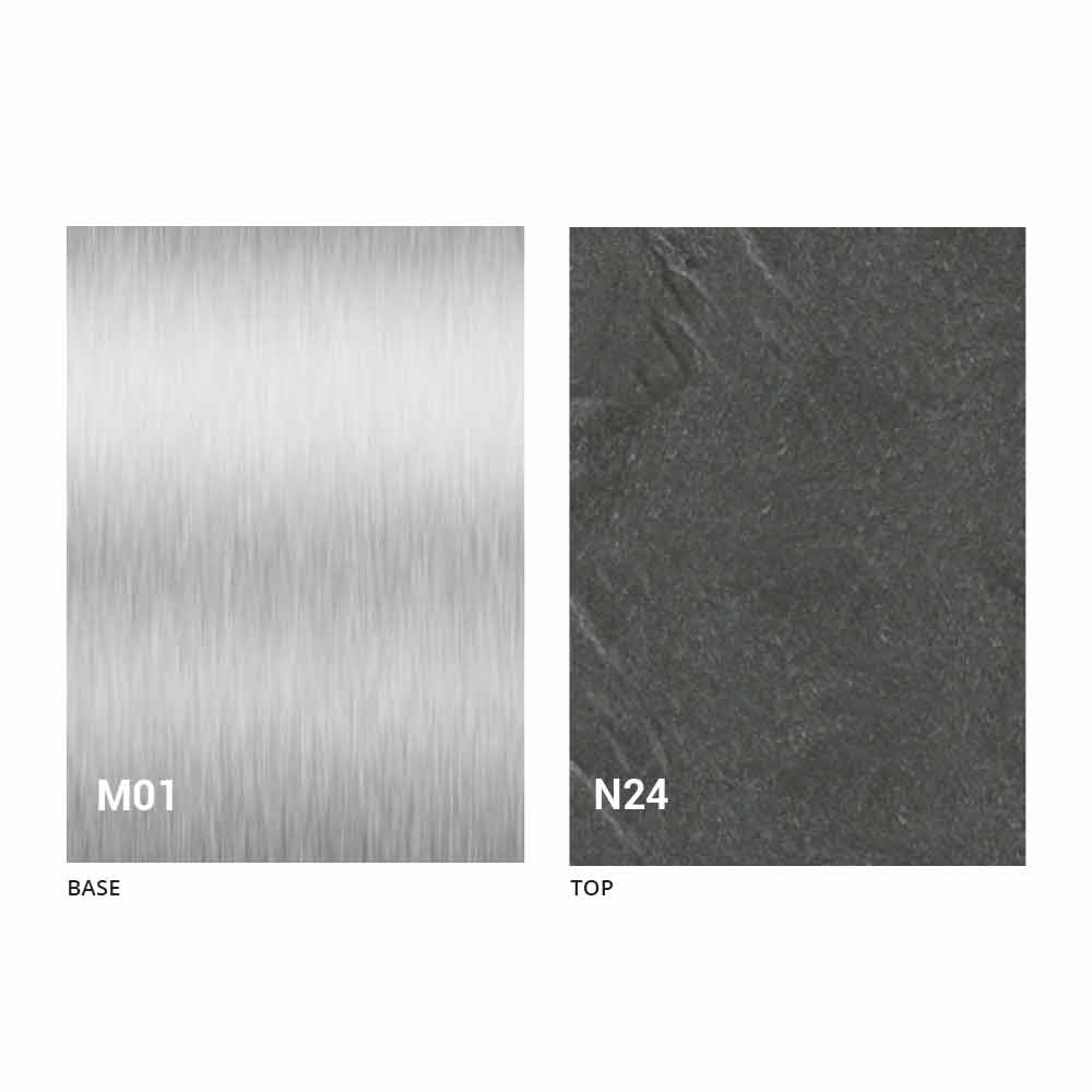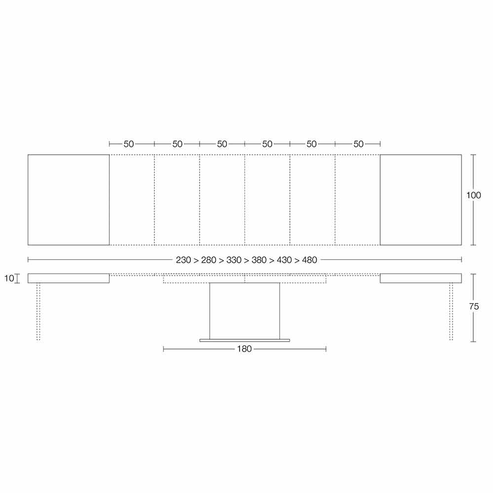 Tavolo per sala da pranzo allungabile con piano in legno nobilitato e base in metallo Made in Italy.