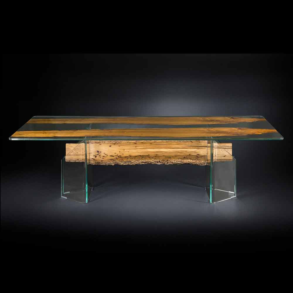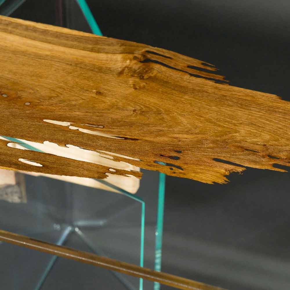 Tavolo di design in legno di briccola veneziana e vetro Venezia