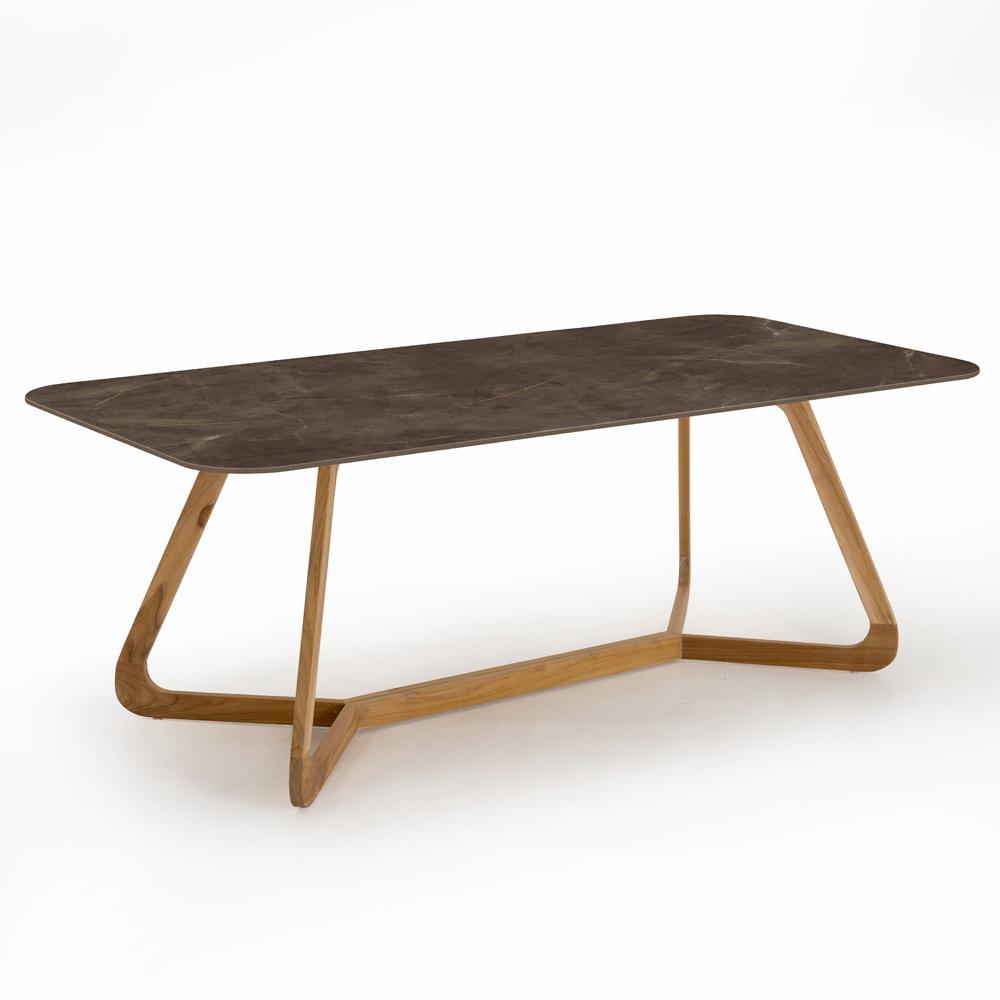 Tavolo rettangolare da giardino in legno e ceramica Made in Italy
