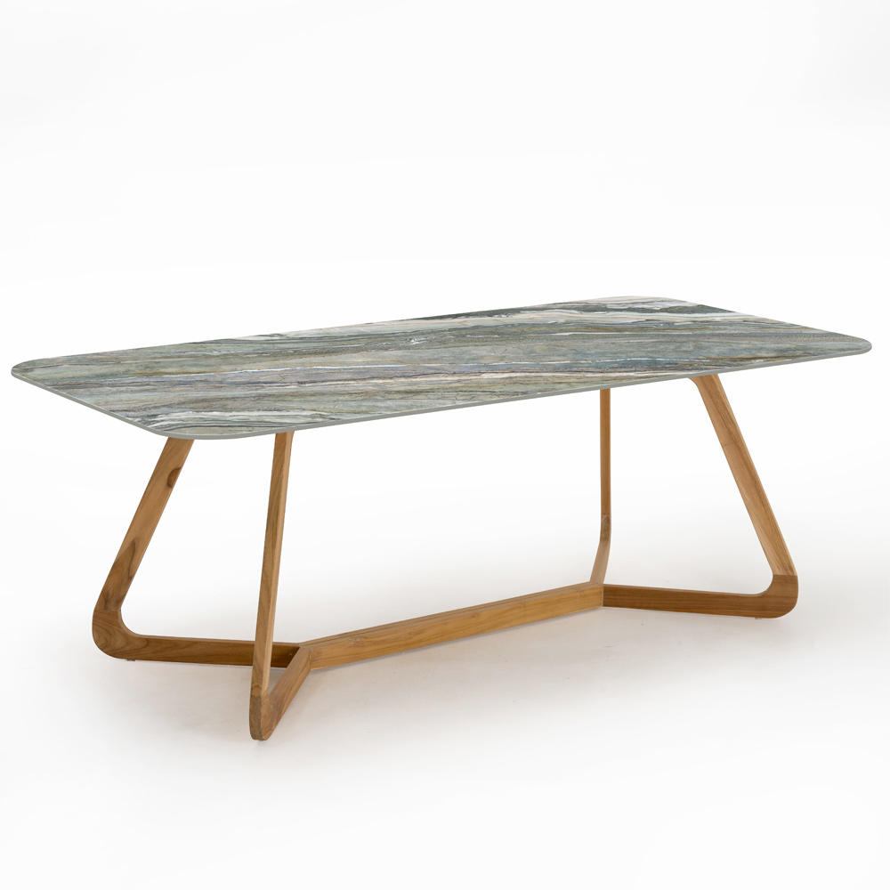Tavolo rettangolare da giardino in legno e ceramica Made in Italy